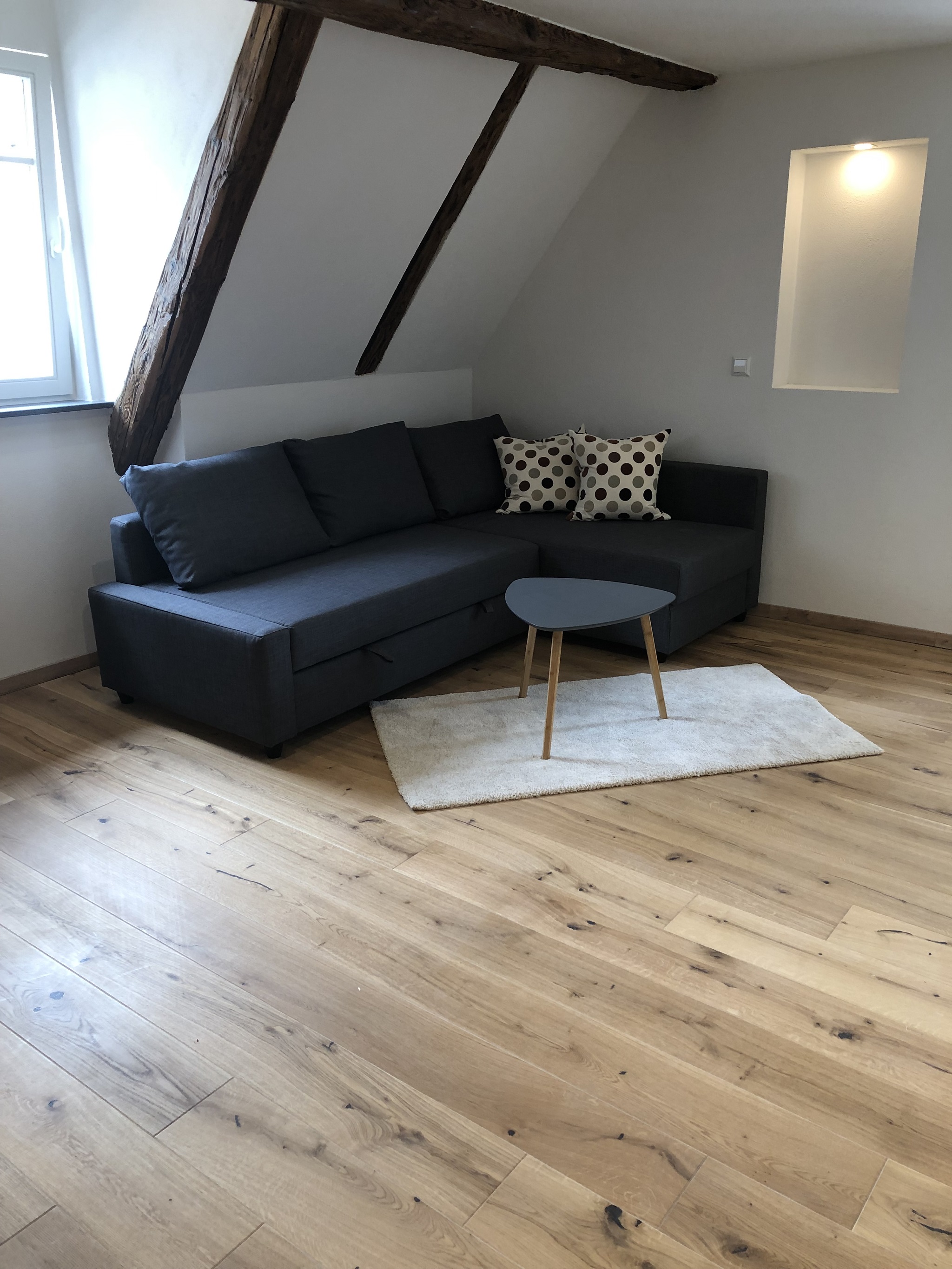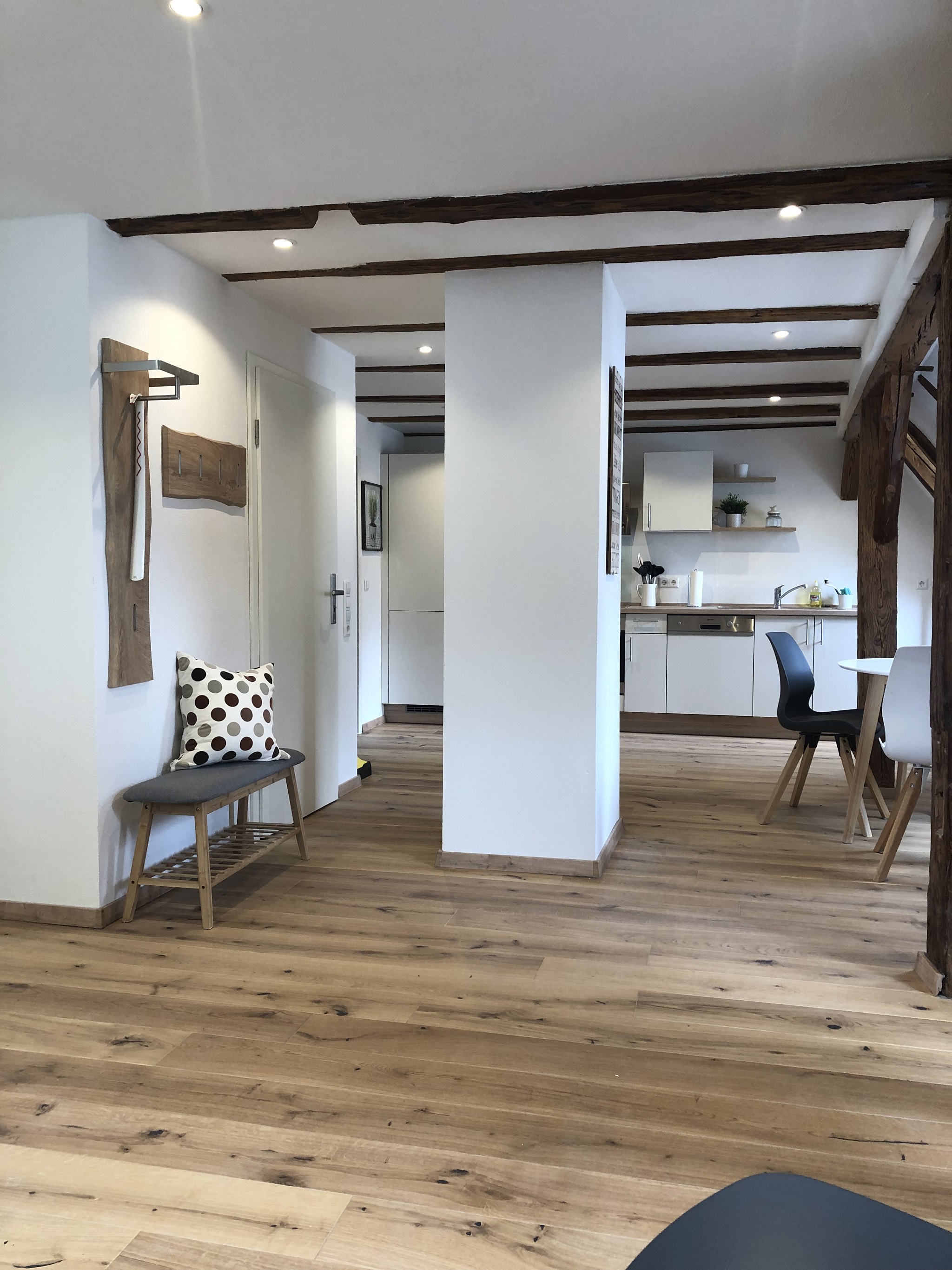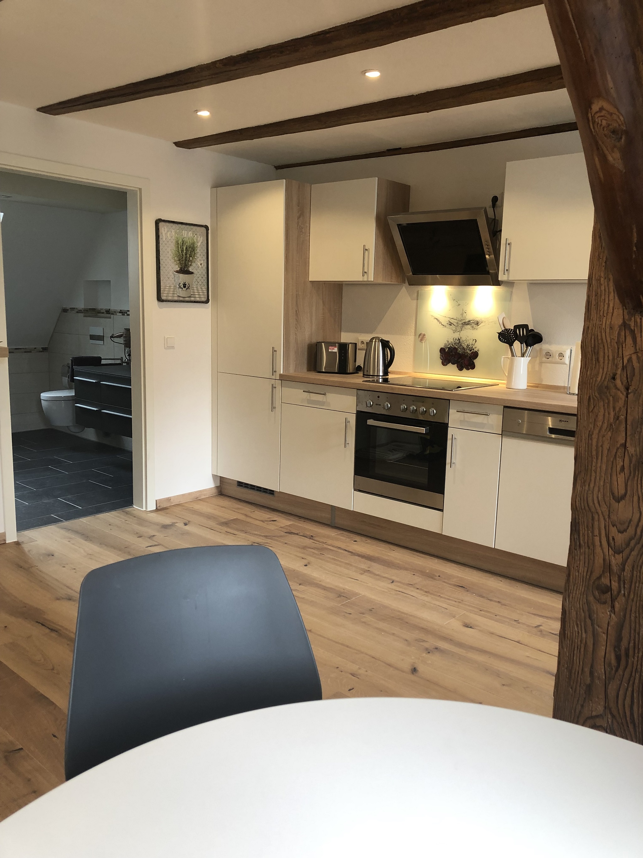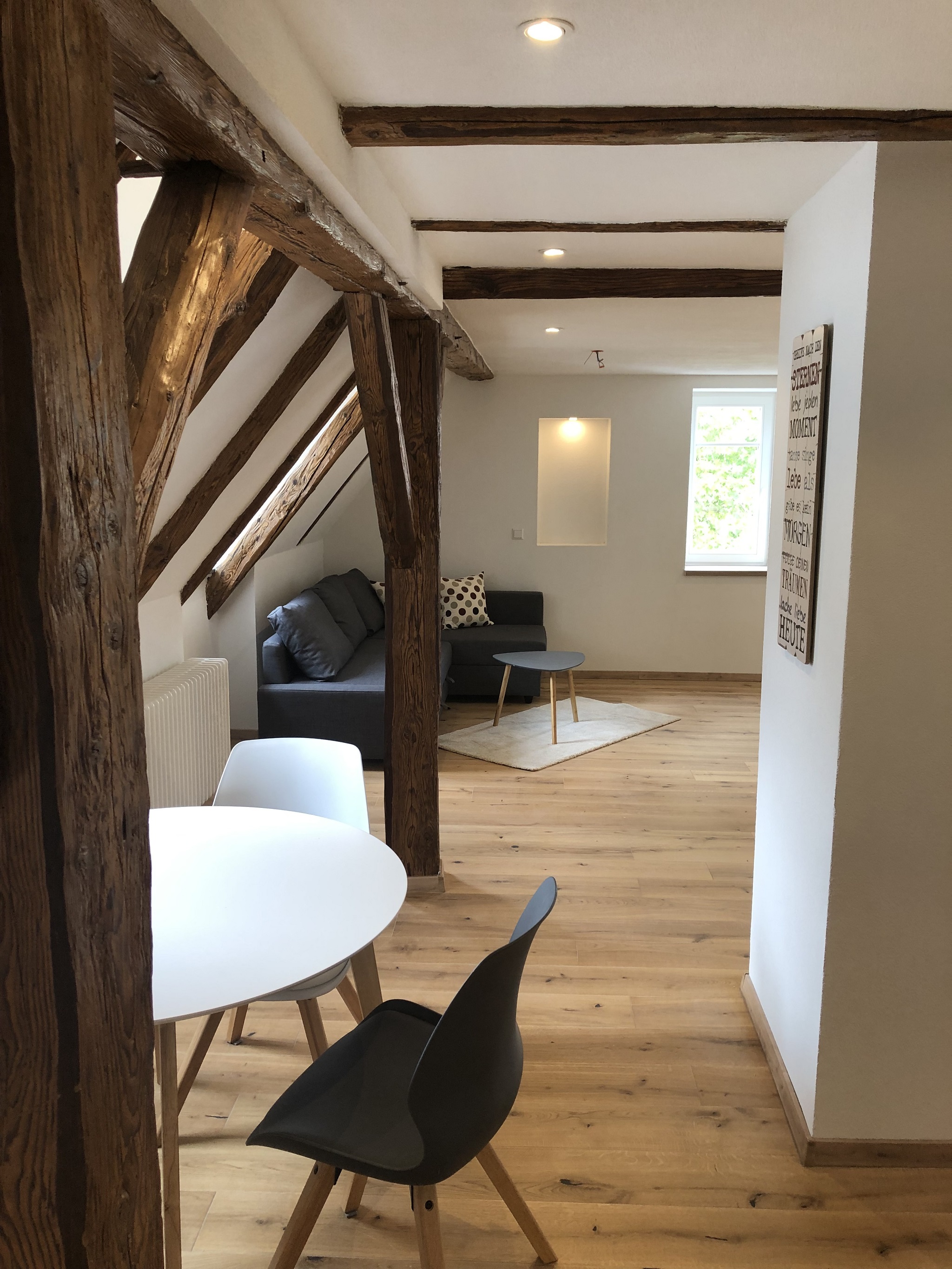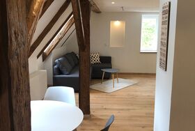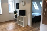 Ca. 55 qm große, moderne Wohnung mit historischem Ambiente. Die Wohnung bietet ein großes Wohn/Esszimmer mit Schlafsofa und ein separates Schlafzimmer mit Doppelbett.