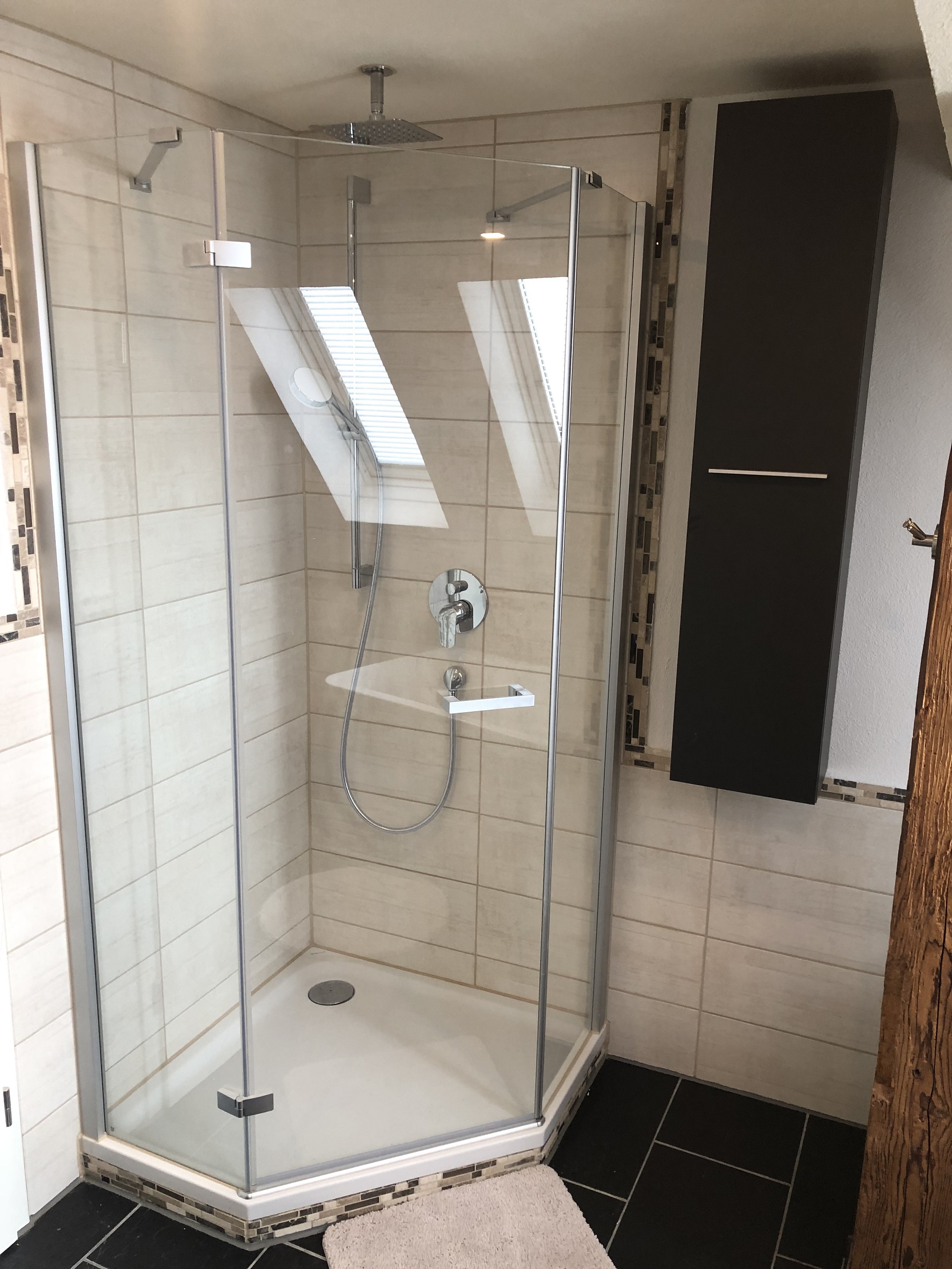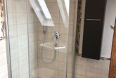 Das großzügige Bad ist mit Badewanne und Regendusche ausgestattet.