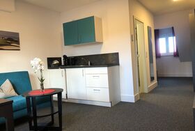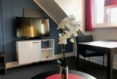 Das Appartement (Größe 29 qm) ist modern, zeitlos und mit einem Boxspringbett (160 x 200 cm), einer Schlafcouch (140 x 200 cm), Dusche & WC, einer Küchenzeile (Teller, Besteck, Töpfe, Kaffeemaschine, Wasserkocher, sons. Küchenutensilien), Kühlschrank, SAT-TV ausgestattet und befindet sich im 2.Stock. WLAN ist kostenlos verfügbar.