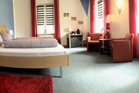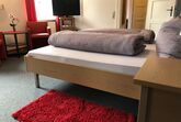 Die Doppelzimmer (Größe ca.35 qm) sind modern und zeitlos mit direktem Blick auf den Golfplatz. WLAN ist kostenlos verfügbar. Waschmaschine, Bügelbrett und Trockner (Keller Appartements) können mit benutzt werden.