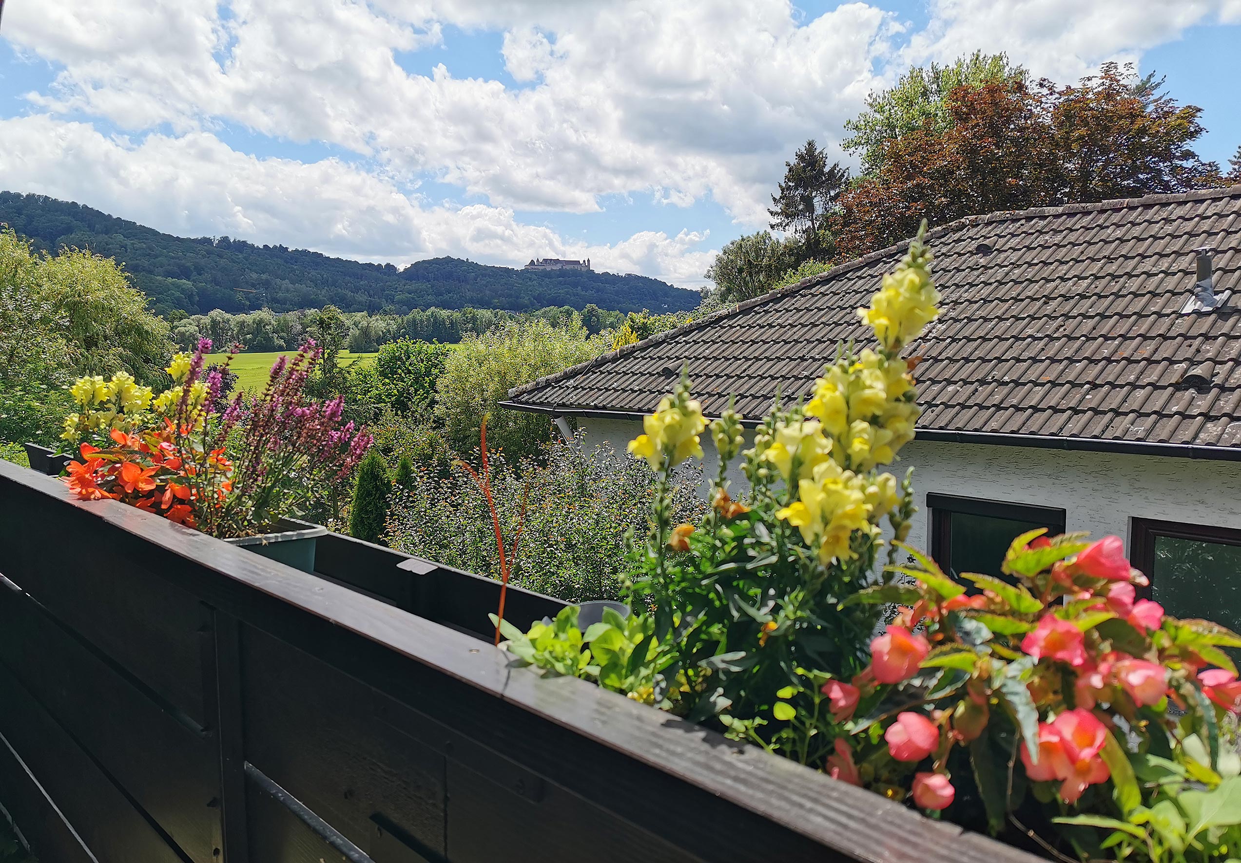 Unser Haus bietet eine Komfort-Studiowohnung mit 60 Quadratmeter (bis 4 Personen) mit Schlafzimmer (Doppelbett und ausziehbarem Sofa für 1 erwachsene Person oder 2 Kinder, Babybett vorhanden und zustellbar). Wohnzimmer (ausziehbares Sofa für 1 erwachsene Person), Küchenblock integriert, Bad mit Dusche und WC, große Loggia mit herrlichem Blick zur Veste Coburg, Sat-TV, Stereoanlage, WLAN und Parkplatz ohne Gebühr. Bettwäsche und Handtücher sind im Preis enthalten.
