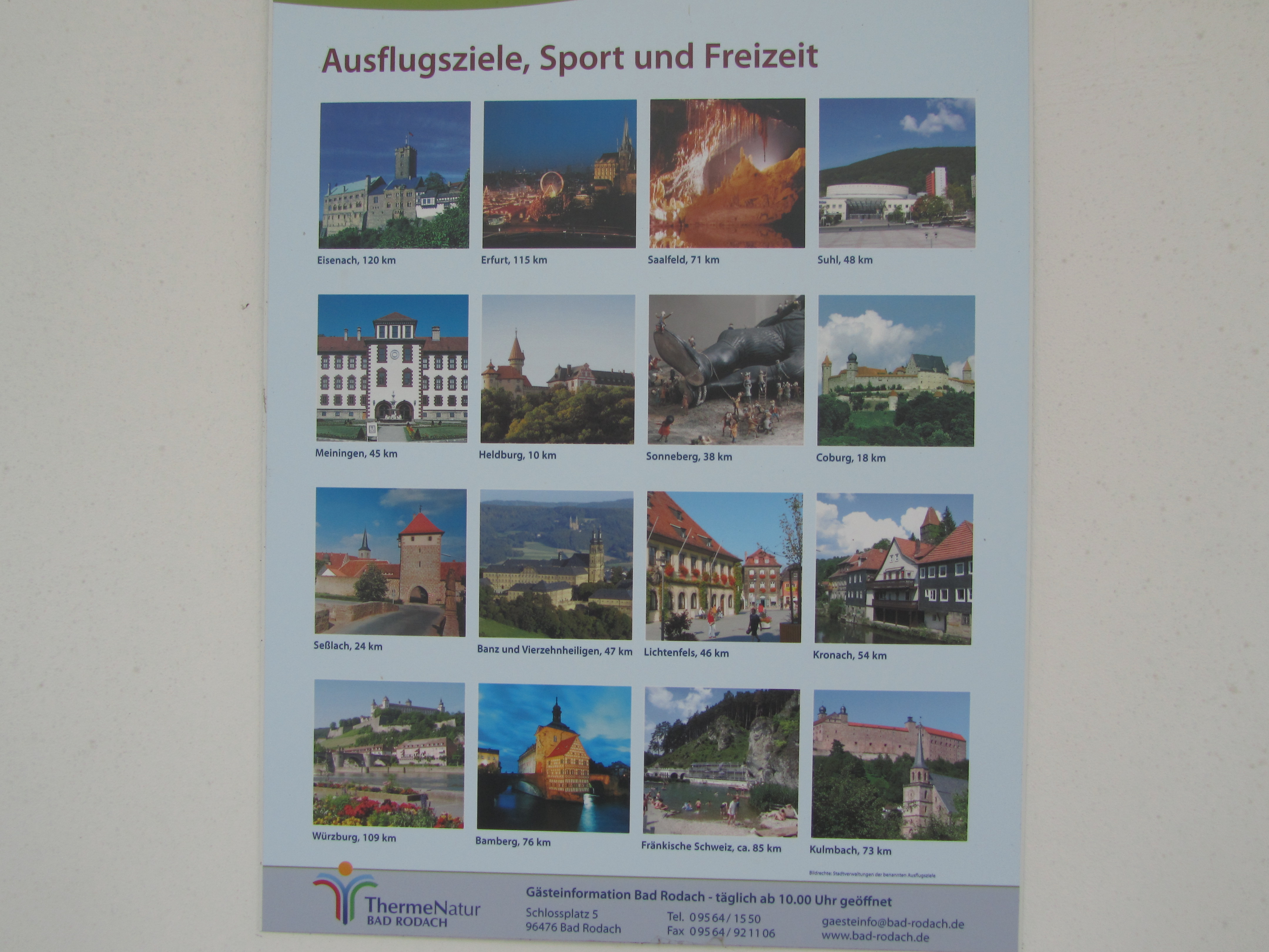 79,00 bis 91,00 € pro Einheit/Nacht incl. Endreinigung, Wäscheausstattung und W-LAN. Die 2-Zimmer Ferienwohnungen befinden sich in einem Appartementhaus, sind hochwertige ausgestattet, geschmackvoll eingerichtet und mit 4 Sternen klassifiziert. Die Größe beträgt 48 qm und ist für zwei Personen ein ideales Urlaubsdomizil. Die Therme-Natur ist fußläufig ca. 200 Meter entfernt. Ein Eingang zum Kurpark befindet sich in unmittelbarer Nähe des Hauses. Restaurants und ein Supermarkt sind zu Fuß in ca. 15 Minuten erreichbar. Die Stadt Coburg ist 18 km entfernt. Bis zum Wandergebiet Rennsteig fährt man mit dem Pkw ca. 45 Minuten. Im Haus befindet sich eine Tiefgarage für die Mieter der Appartements.
