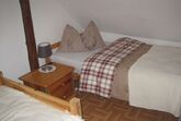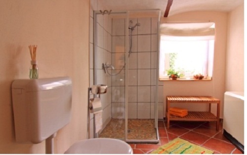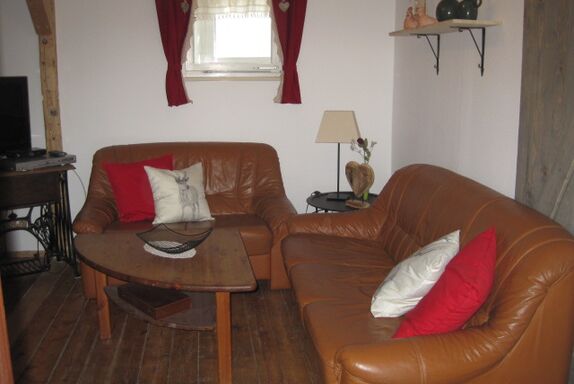 Unser Ferienhaus im Landhausstil stammt aus dem 19. Jahrhundert und wurde 2009 komplett renoviert. Es bietet Ihnen ein gemütliches Zuhause während Ihres Urlaubs auf 75qm welche sich auf 3 Ebenen verteilet. Das Ferienhaus ist mit Naturholzmöbeln gemütlich eingerichtet und empfängt Sie in einem Landhaus Ambiente. Im Erdgeschoss befindet sich der Eingangsbereich mit einer Sitzgelegenheit und ein geräumiges Bad mit ebenerdiger Dusche, WC und einem Waschbecken. Für unsere kleinen Gästen gibt es einen Wickeltisch mit Badewanne. Über eine Treppe erreicht man das 1.Obergeschoss dort befindet sich eine vollständig eingerichtete Küche, in der ein Kaffeevollautomat, Spülmaschine, Mikrowelle und ein Radio vorhanden sind. Im angrenzenden gemütlich eingerichteten Wohn- und Esszimmer finden Sie eine Ministereoanlage, Flachbildschirm und Sat sowie einen Kachelofen, der an etwas kühleren Tagen wohlige Wärme ausstahlt. Auf der gleichen Ebene befindet sich noch ein Gäste-WC. Ebenso ein Schlafzimmer mit einem Doppelbett und einem Kleiderschrank, es kann auch noch ein Kinderbett dazu gestellt werden. Gleich im angrenzenden kleinen Zimmer befindet sich noch ein einzel Bett. Im Maisonette- Schlafzimmer im 2. Obergeschoss befinden sich zwei Einzelbetten, ein Kleiderschrank, Sitzgelegenheit und ein zweiter TV und SAT. Unser überdachter Balkon mit Sitzgelegenheit, und Kugelgrill lädt zum Genießen und entspannten sowie gemütliche Grillabende ein.