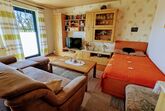 Gemütliches Wohnzimmer mit neuen Sofa, TV Flachbildschirm mit Mediathek, W-Lan, viele Bücher, Radio und CD Anlage.