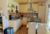 Große Kochnische mit Geschirrspüler, Mikrowelle, Kühlschrank und techn. Geräten.