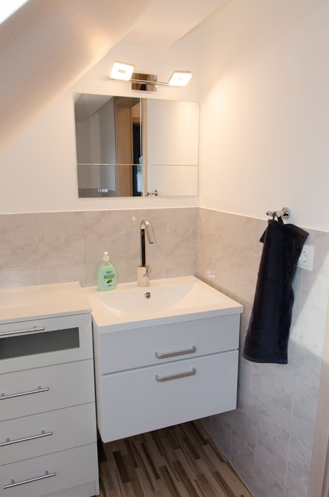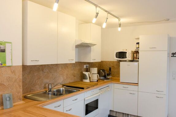 Das Ferienhaus erstreckt sich über zwei Etagen. Auf insegamt 80 Quadratmetern verteilen sich eine Wohnküche, ein Wohnzimmer, zwei Schlafzimmer, ein Badezimmer und ein separates WC sowie ein Balkon. Das Haus verfügt über eine voll ausgestattete Einbauküche mit Herd, Kühlschrank und Gefrierfach, Geschirrspüler, Mikrowelle, Fritteuse und Tischgrill. Im gemütlichen Wohnzimmer sind Radio, Fernseher und DVD Player vorhanden. Das Schlafzimmer verfügt über ein Doppelbett. Das zweite Schlafzimmer ist ein Durchgangszimmer und verfügt über zwei separierte Betten. Das Badezimmer ist ausgestattet mit Dusche, WC und Waschmaschine. Im Obergeschoss ist zusätzlich ein separates WC vorhanden. Bettwäsche, Handtücher, Bademantel und Geschirrtücher stehen Ihnen kostenfrei für Ihren Aufenthalt zur Verfügung. WLAN ist ebenfalls im gesamten Haus kostenfrei verfügbar Seit kurzem haben wir auch noch einen Tresor