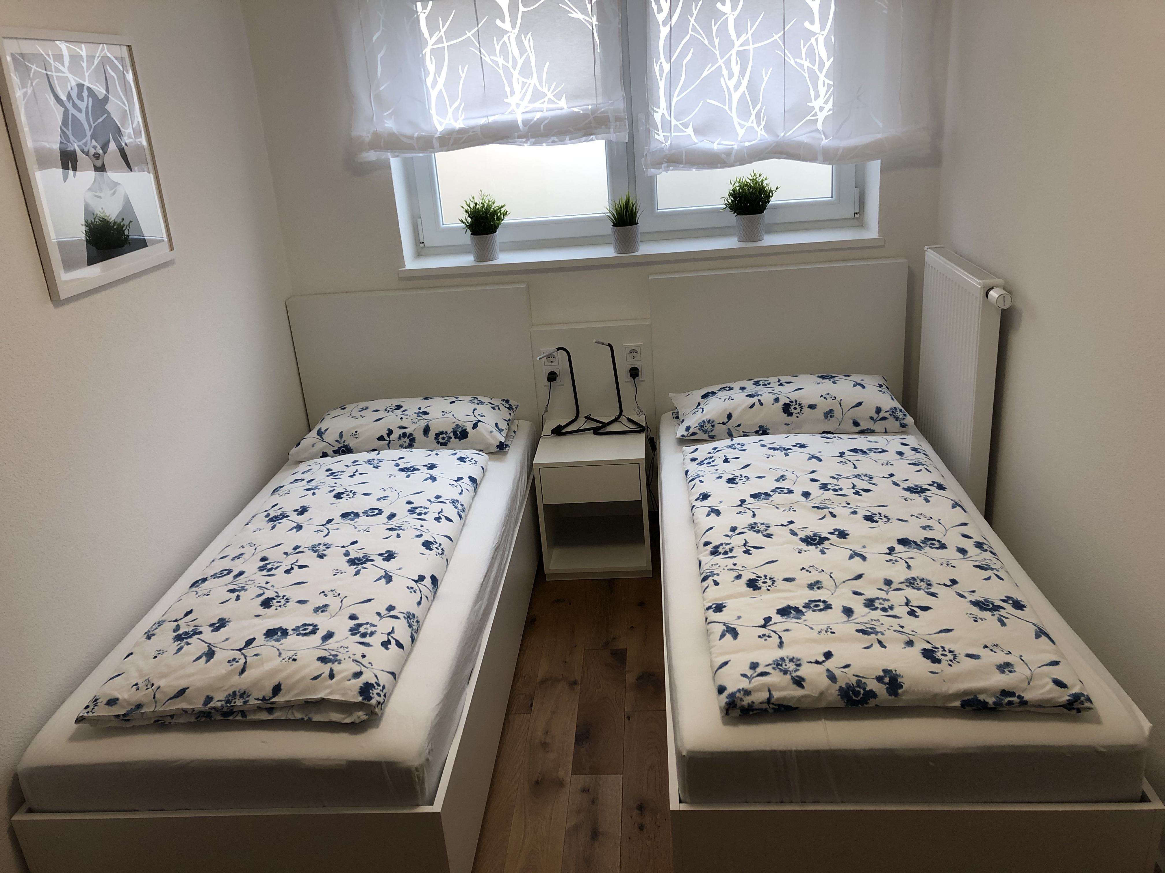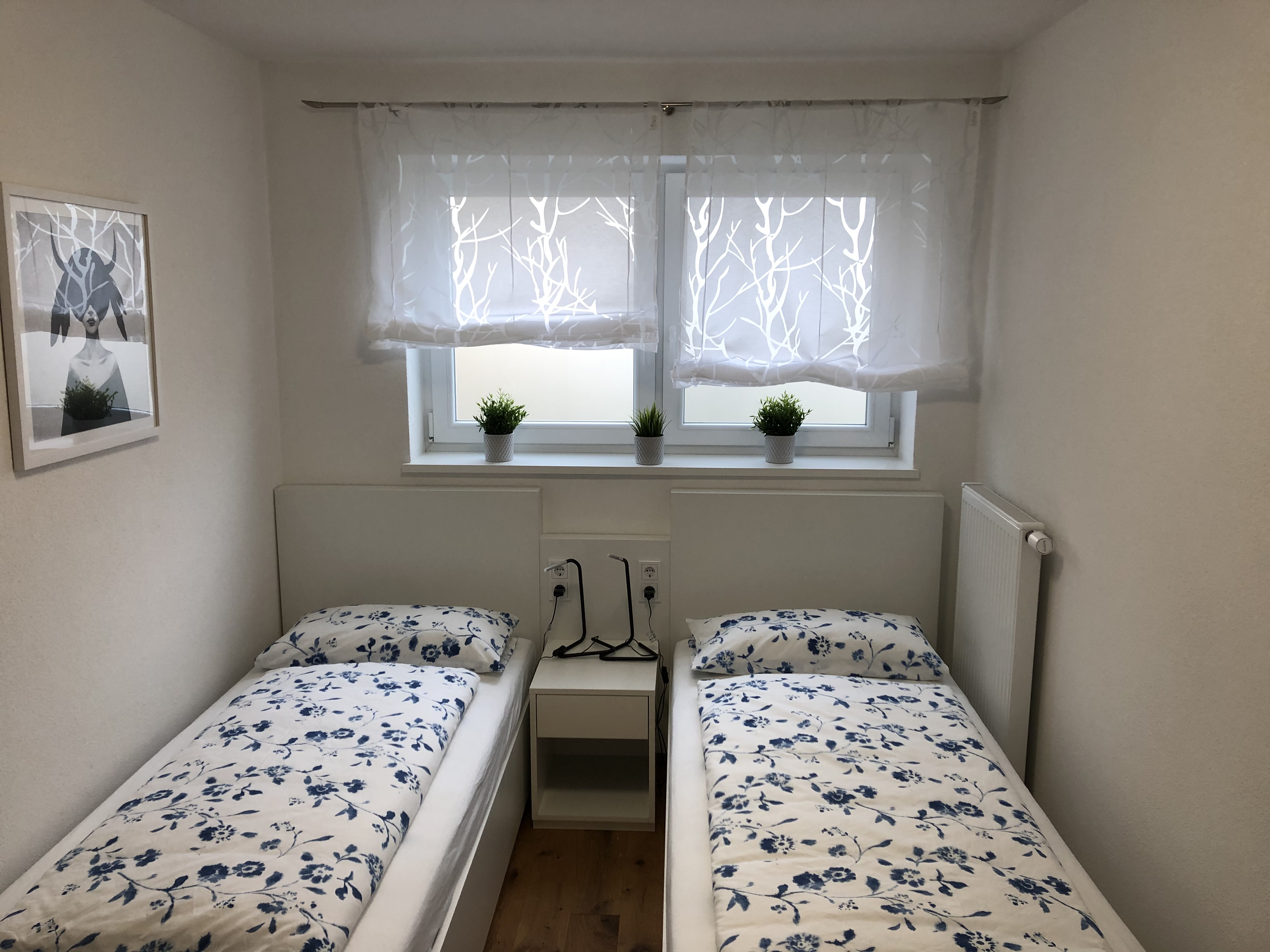 Schlafzimmer: zwei Einzelbetten, Flat TV, Kleiderschrank