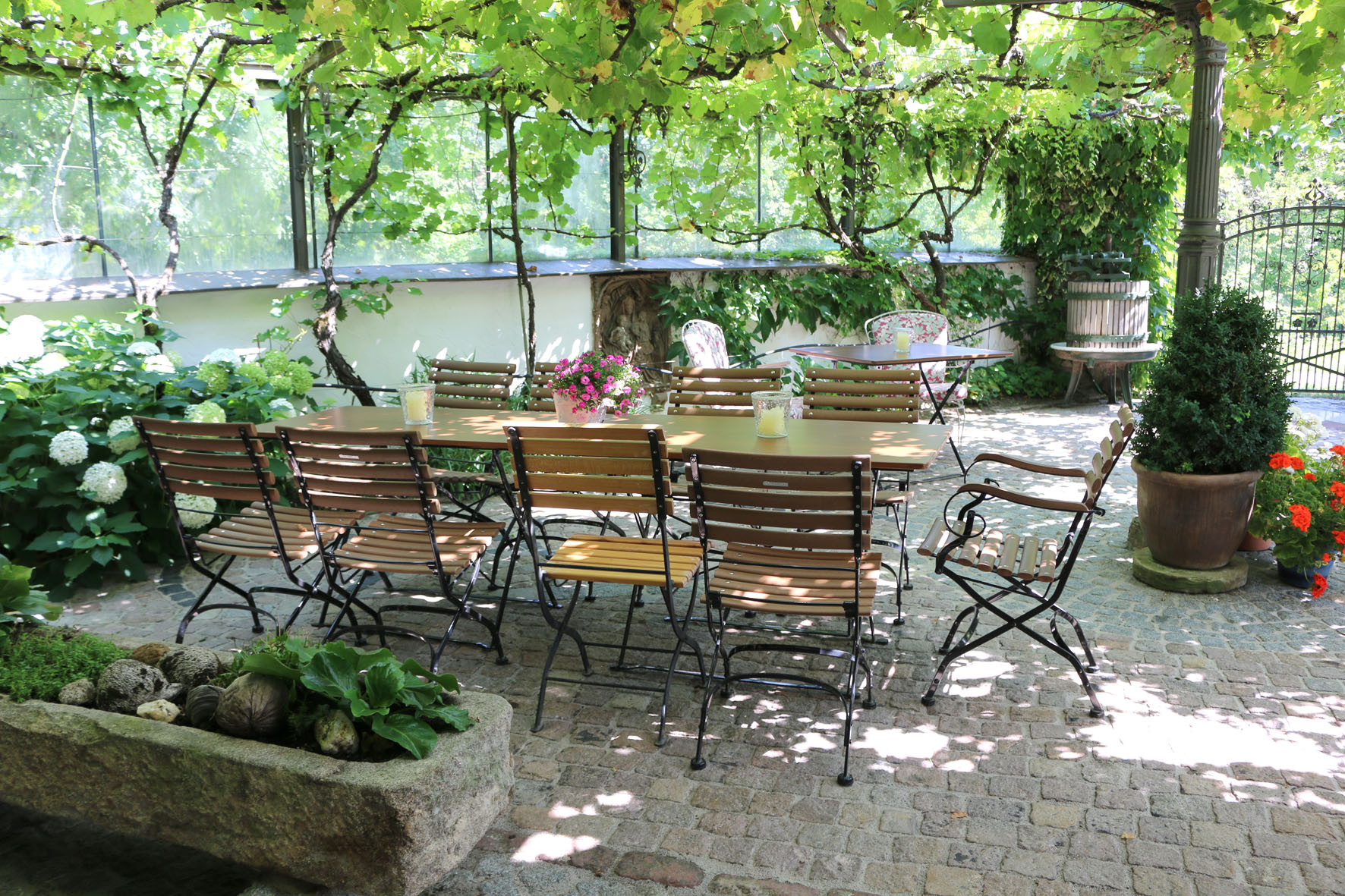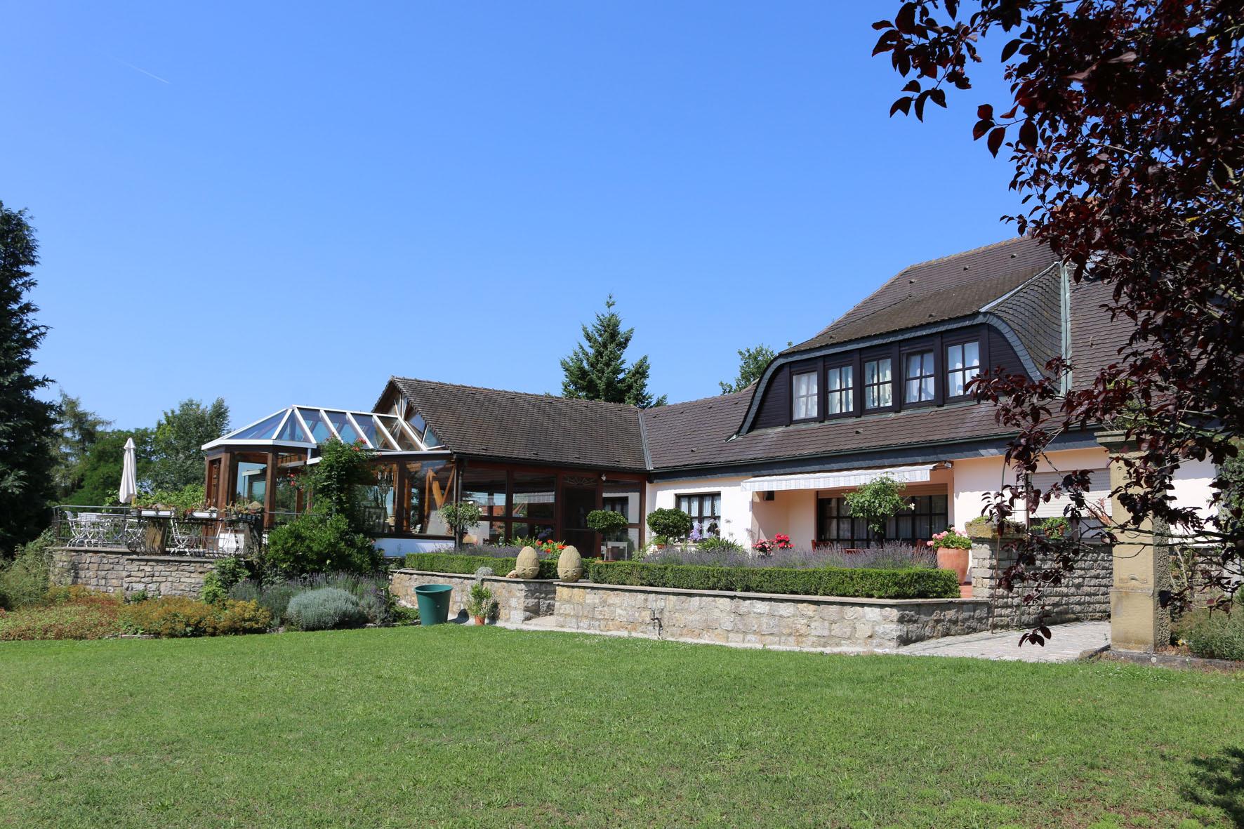 Das grüne Paradies am Ortsrand des prämierten Weinortes Sommerach bietet Ihnen einen Rückzugsort nach Ihrer Weinerkundungstour. In wenigen Gehminuten erreichen Sie die vielen Heckenwirtschaften, Gasthäuser und Vinotheken im Ortskern. Wenn Sie die Ruhe genießen möchten oder sich nach einer Weinprobe in einem der knapp 30 Weingüter Sommerachs eine Pause gönnen möchten, bietet Ihnen der ausgedehnte Garten einen geeigneten Rückzugsort.