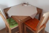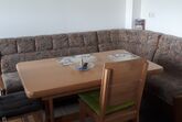 Desweiteren ist ein Flachbild-TV ein Tisch mit 2 Stühlen sowie und ein Ledersessel vorhanden.