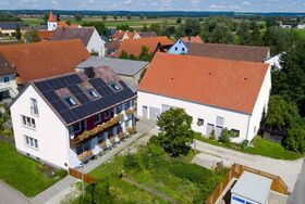 Die FeWo ist im 2. Stock ruhige Lage. Unser Bauernhof wird nicht mehr bewirtschaftet. Die Hühner leben im Obstgarten. Im Hofraum befindet sich ein Spielhaus mit Sandplatz und daneben ein Sitzplatz zum Verweilen und Entspannen. Am Sportplatz ist ein Bolz.-, Tennis- und Spielplatz, hier an der Wörnitz ist der Badeplatz, Radeln, Wandern, Nordic-Walking oder Spazieren auf flachem Land.