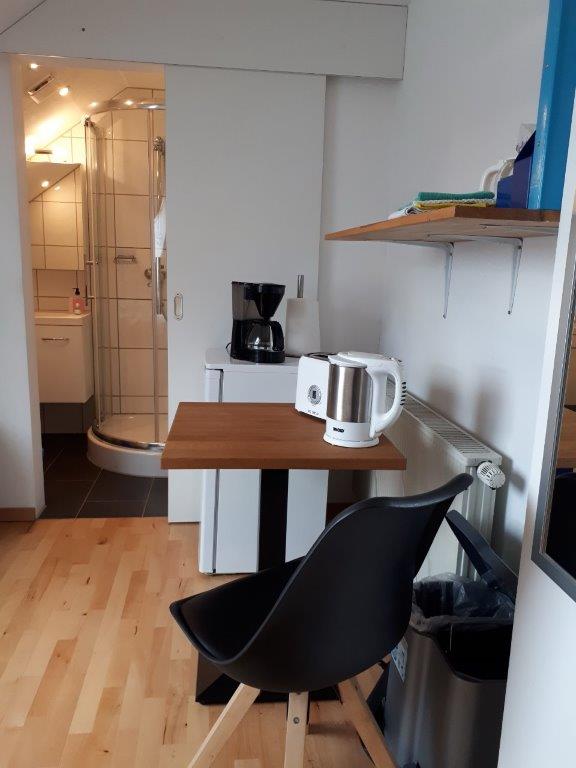 Die Küche kann dazu gebucht werden (Etagenküche im Erdgeschoss). Sie ist komplett ausgestattet einschließlich Spülmaschine, Kaffeemaschine, Toaster, Geschirr uam.
