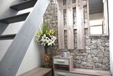 1 Sitzbank, 1 Garderobe mit Schuhschrank und Spiegel, Raumspartreppe führt in das ausgebaute Dachgeschosszimmer