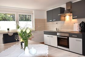 Liebevoll und gemütlich eingerichtete Nichtraucherwohnung bietet auf 85 m² Platz für bis zu 6 Pers. auf 2 Ebenen. Wohnzimmer mit Schlafcouch, TV u. DVD-Player, Schlafzimmer mit komfortablem Doppelbett u. geräumigem Schrank, auf Wunsch Kinderbett zusätzlich möglich, vollständig eingerichtete Küche mit großzügiger Essecke, modernes Tageslicht-Bad, eigene Terrasse u. Garten, Parkplatz im Hof, W-Lan, Grill u. viele weitere Extras im Preis enthalten. Nutzung einer Waschmaschine sowie Trockner ist auf Anfrage möglich. Wir freuen uns auf Sie !