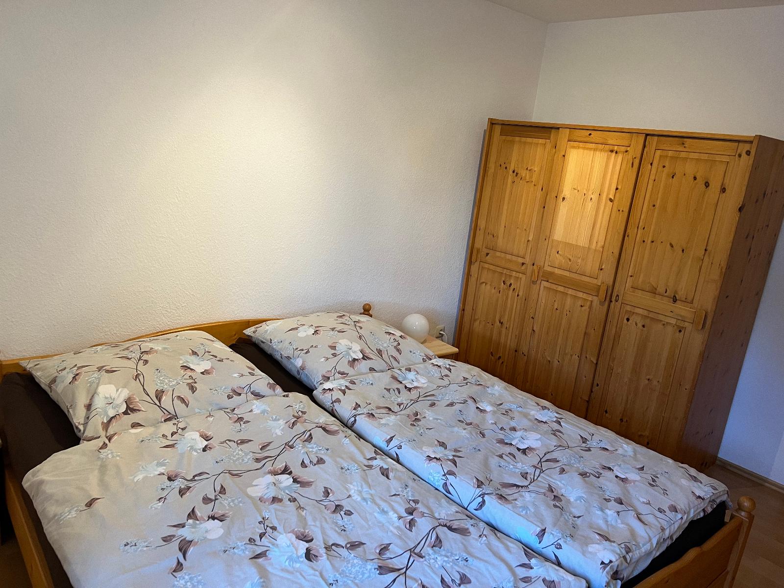Das Schlafzimmer verfügt über ein Doppelbett 1,80m x 2,00m mit 2 Kopfkissen und 2 Decken, einen Kleiderschrank bietet Ihnen Platz für Ihre Kleidung.