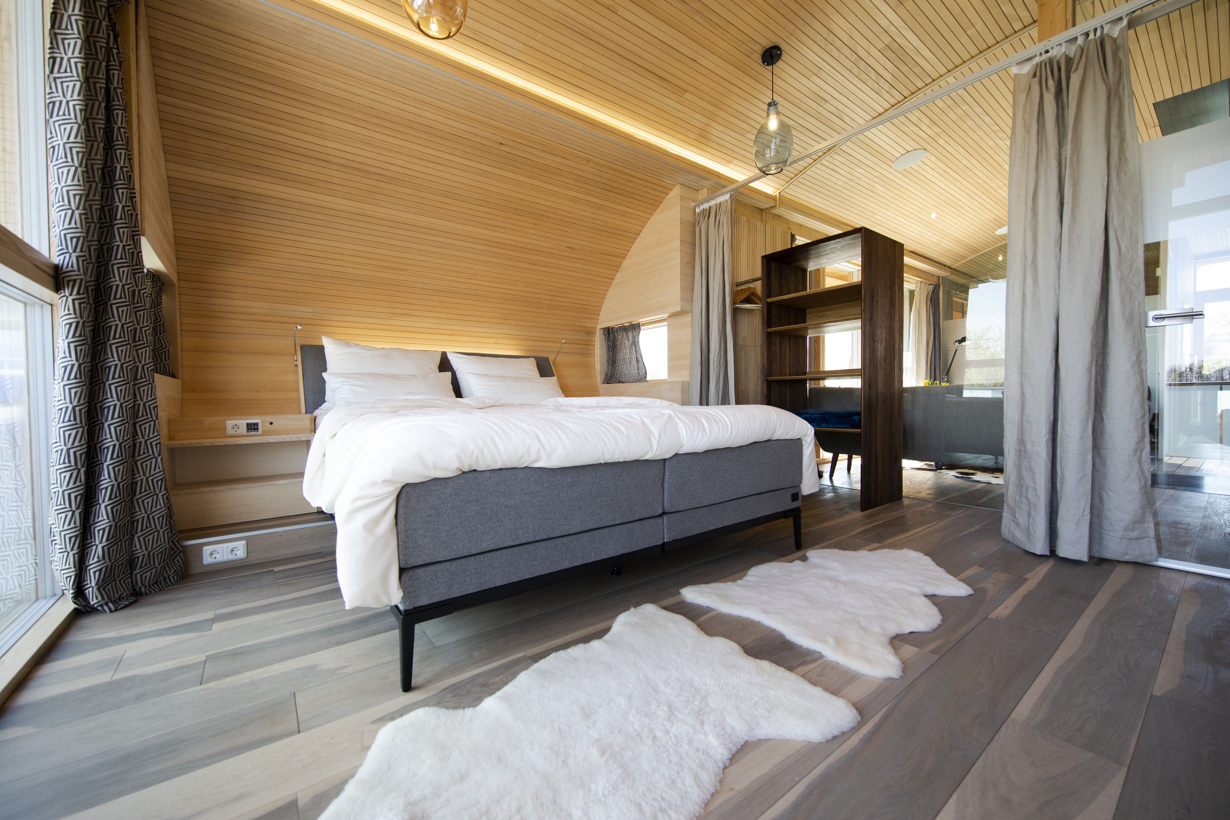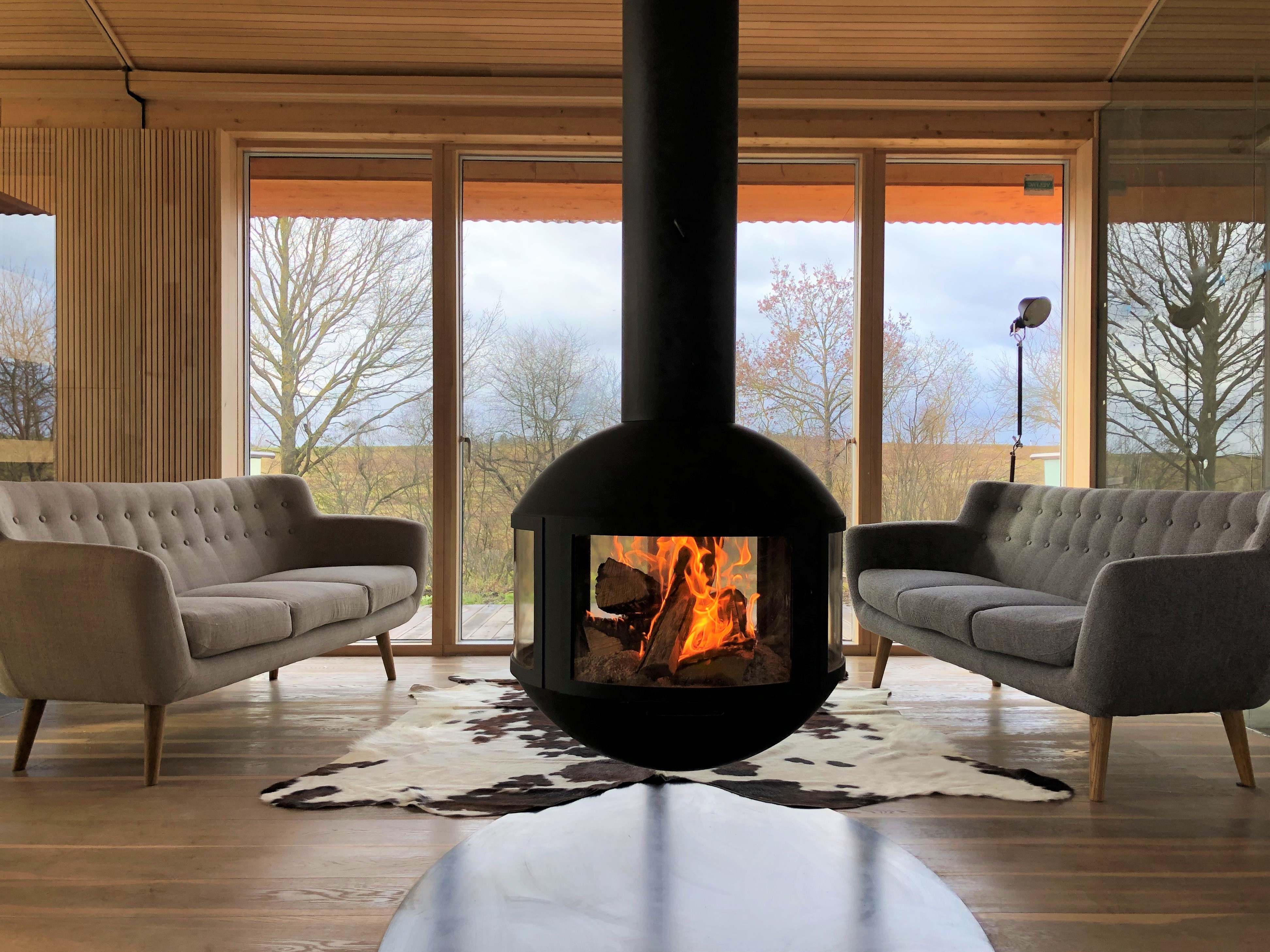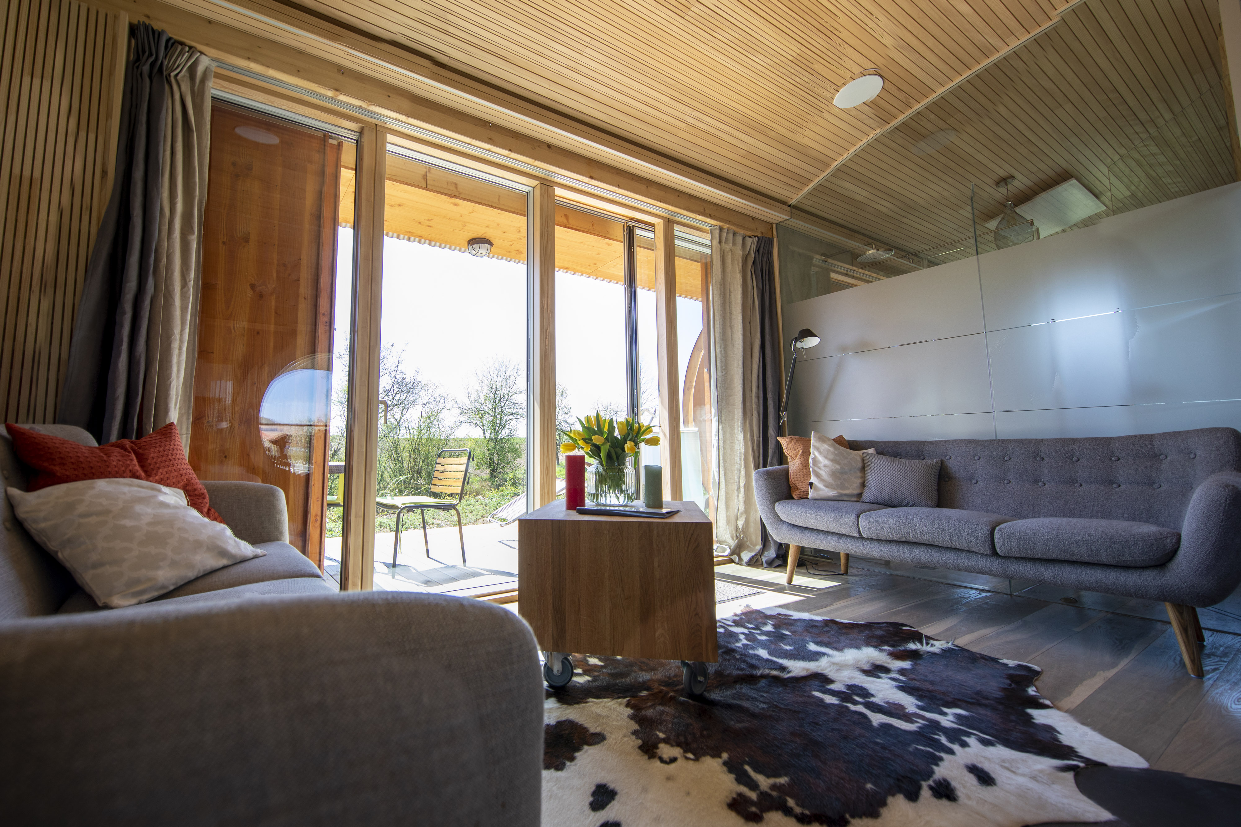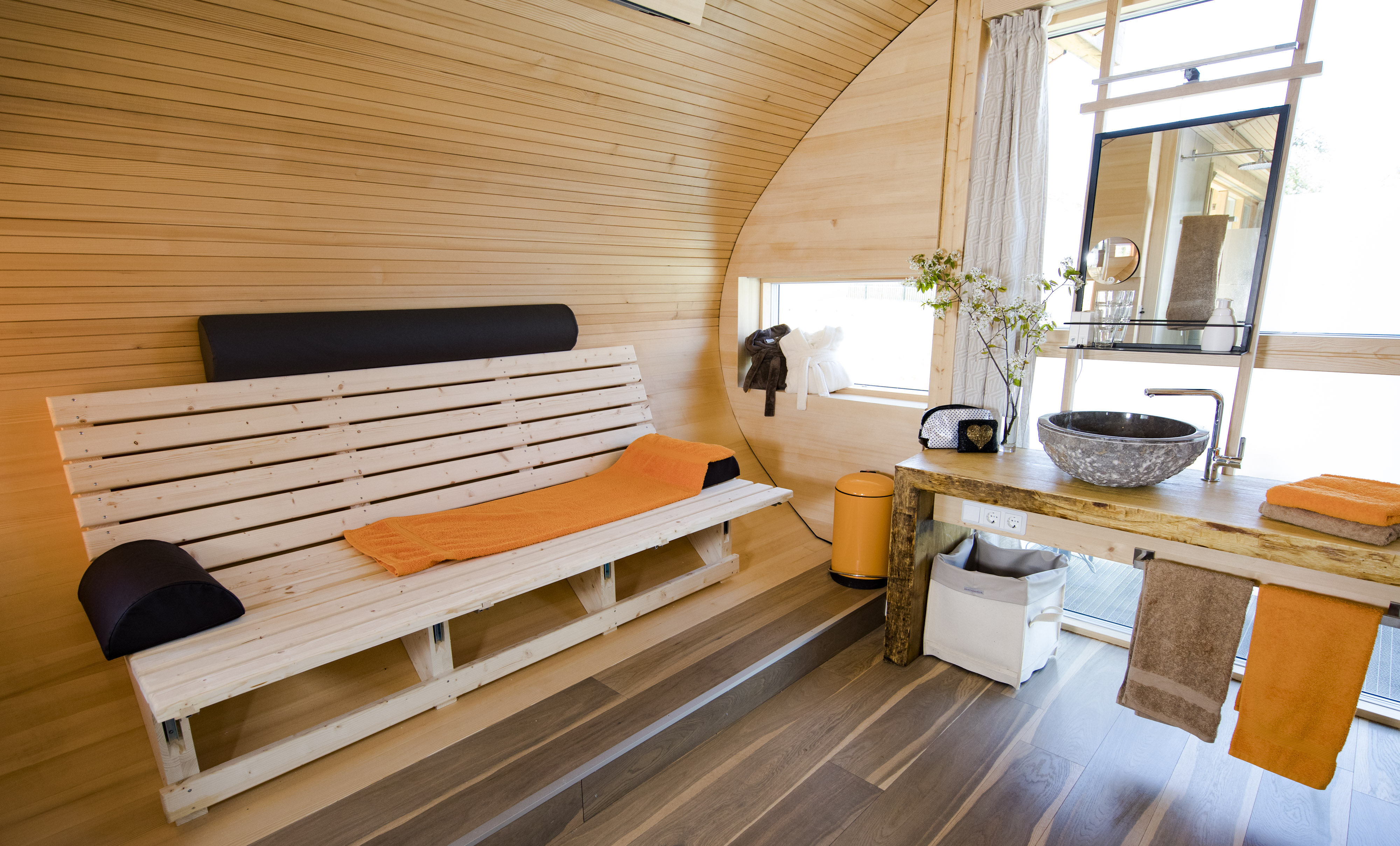 Im UFO47 erwartet Dich ein luftig, helles Wohngefühl. Den zentralen Blickfang bildet der Focus-Hängekamin, kinderleicht zu befeuern und wärmender Mittelpunkt zur Kuschelzeit. Die beiden Schlafzimmer sind zum Wohnraum hin nur mit Glas getrennt, eines der Schlafzimmer hat ein Smart-TV-Gerät. Wer frühmorgens nicht von den ersten Sonnenstrahlen an der Nase gekitzelt werden will, verdunkelt die Bettnische in der heimeligen,runden Bettnische mit Vorhängen. Ausblicke hat man im UFO47 nach allen vier Himmelsrichtungen, auf einem der drei Balkone kann man immer ein sonniges oder schattiges Plätzchen finden. Das große Wellness-Bad verwöhnt mit einer Infrarot-Liege und besonderen Einrichtungsideen vom Schreiner-Designer! Auch die passgenau konzipierte Küche lässt keine Wünsche offen, und dann ist da noch der ganz besondere Chillingplace im Bullauge mit Blick auf den Schwimmteich.... einfach galaktisch!
