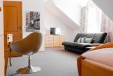 Unsere Ferienappartments sind ca. 60 qm groß und beinhalten ein Badezimmer mit Dusche und WC, einen Wohnbereich mit Küchenzeile, Kühlschrank, Gefrierfach, Kaffeemaschine und Wasserkocher. Zusätzlich sind diese mit einer Schlafcouch, sowie einem Schlafzimmer, SAT-TV und kostenlosem W-LAN ausgestattet. Das Rauchen ist auch hier nicht gestattet. Parkplätze im Hof und eine Fahrradgarage stehen auch hier zur Verfügung.