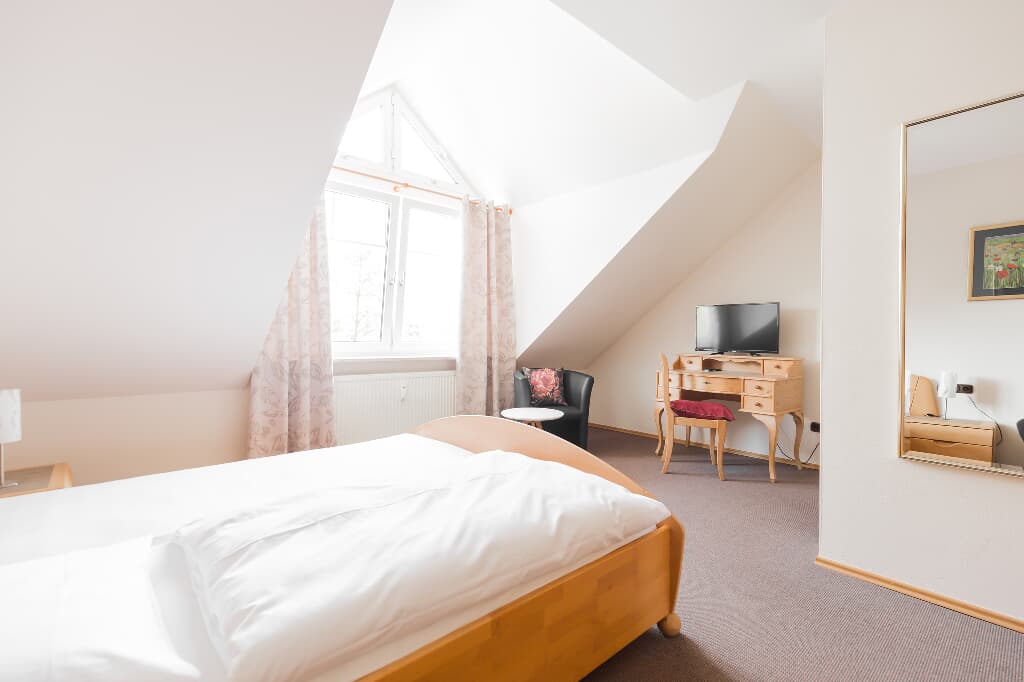 Unsere ca. 25-30 qm großen Nichtraucher-Zimmer sind mit Badezimmer inkl. Duche und WC, SAT-TV und kostenlosem W-LAN ausgestattet. Weiterhin gibt es Parkplätze im Hof und auch Platz für Ihre Fahrräder.