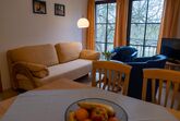 Die Wohnung (42m²) liegt im Erdgeschoß und hat einen herrlichen Blick auf unseren historischen Innenhof und auf den Obstgarten. Sie hat ein Schlafzimmer mit Doppelbett, die Lattenroste sind im Kopfteil höhenverstellbar, ein Wohnzimmer, eine Küche, Dusche / WC mit Fenster. Die Küche ist komplett ausgestattet mit Geschirr, Töpfen und Besteck, einen Geschirrspüler, Kaffeemaschine, Kühlschrank, Gefrierschrank, Herd, Backofen, Toaster und Wasserkocher.