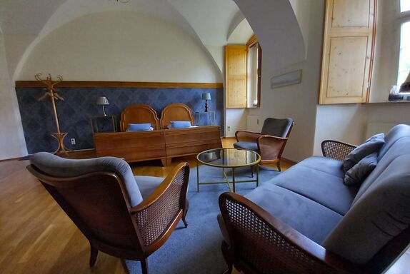 Unter stilvollem Kreuzgewölbe im Backhaus des ehemaligen Zisterzienserklosters Langheim lässt sich hervorragend wohnen und entspannen.