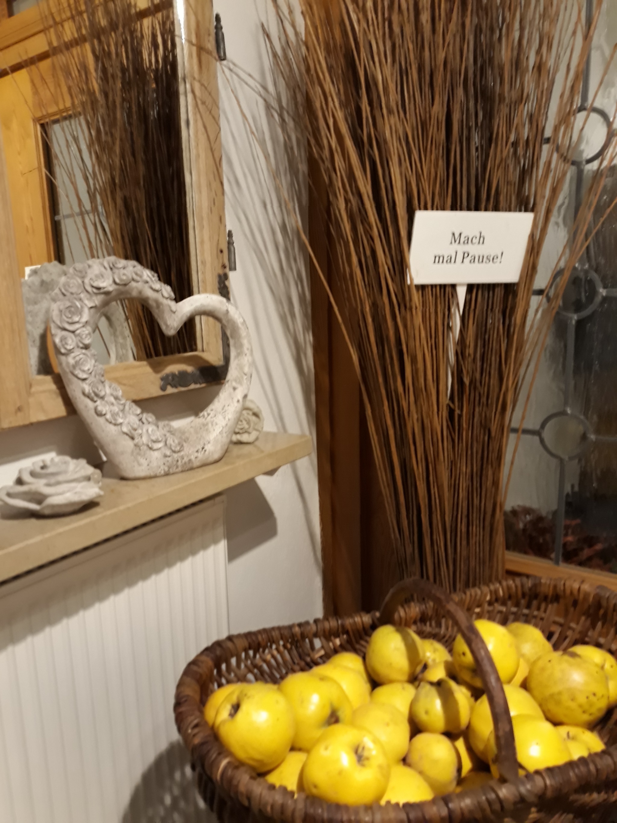 Die herrliche Umgebung lädt zum aktiven Erkunden ein: per Pedes, per Velo, per Auto – nach 14-heiligen, Kloster Banz, zum Staffelberg, Bad Staffelsteiner Therme, Lichtenfels, Coburg, Bamberg, Bayreuth, Kulmbach oder in die fränkische Schweiz. Die Vielfalt der Ausflugsmöglichkeiten sind beinahe grenzenlos. Verwöhnen Sie Ihren Gaumen mit fränkischer Hausmannskost in einem der vielen Landgasthöfe oder regionalen Brauereien – gehobene Küche für den Gourmet finden Sie ein paar Autominuten entfernt. Sie können sich in unserer Genussregion natürlich auch selbst versorgen … kleine Bäcker oder Metzger finden Sie in der nahen Umgebung