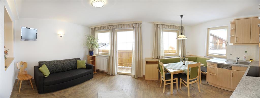 Das App. Obertal besteht aus einem Wohnschlafraum mit Doppelbett und einem zweiten Schlafzimmer mit ebenfalls einem Doppelbett. In diesem App. können bis zu 6 Personen nächtigen und es hat eine Größe von ca. 65m². In beiden Zimmern ist ein Badezimmer mit Dusche und Waschbecken und WC. Die Küche ist mit einem Kühlschrank, 2 Herdplatten und einer Kaffeemaschine ausgestattet. Besteck und Geschirr, sowie Pfannen und Töpfe sind alle vorhanden. Ihre zubereiteten Köstlichkeiten können Sie auf dem Esstisch mit Blick ins Obertal genießen. Bettwäsche und Handtücher werden zur Verfügung gestellt.