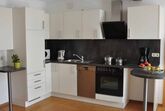Kinderausstattung: Babybett, Bettzeug, Hochstuhl, Wickeltisch mit Wickelauflage, Rausfallschutz, Nachtlicht, Töpfchen, Kinderbesteck/Kinderteller/Tassen in der Küche.