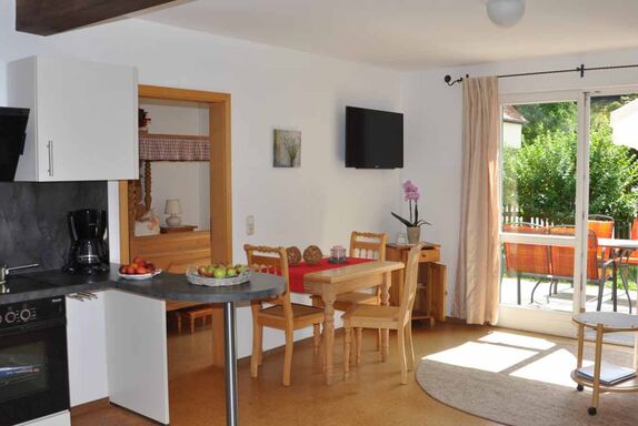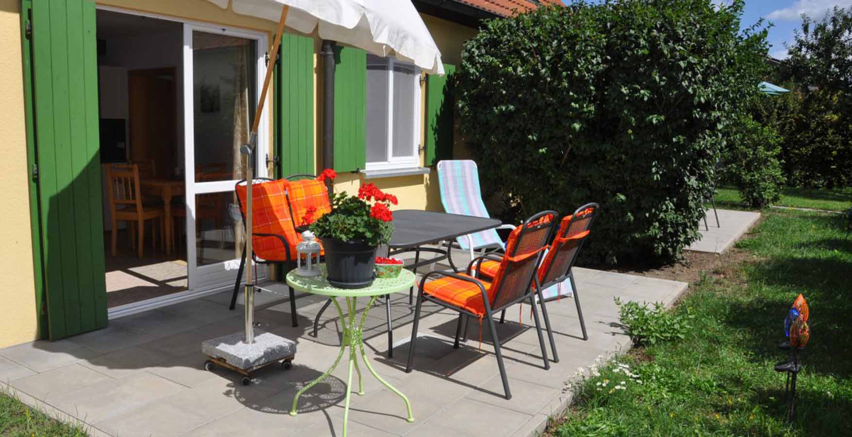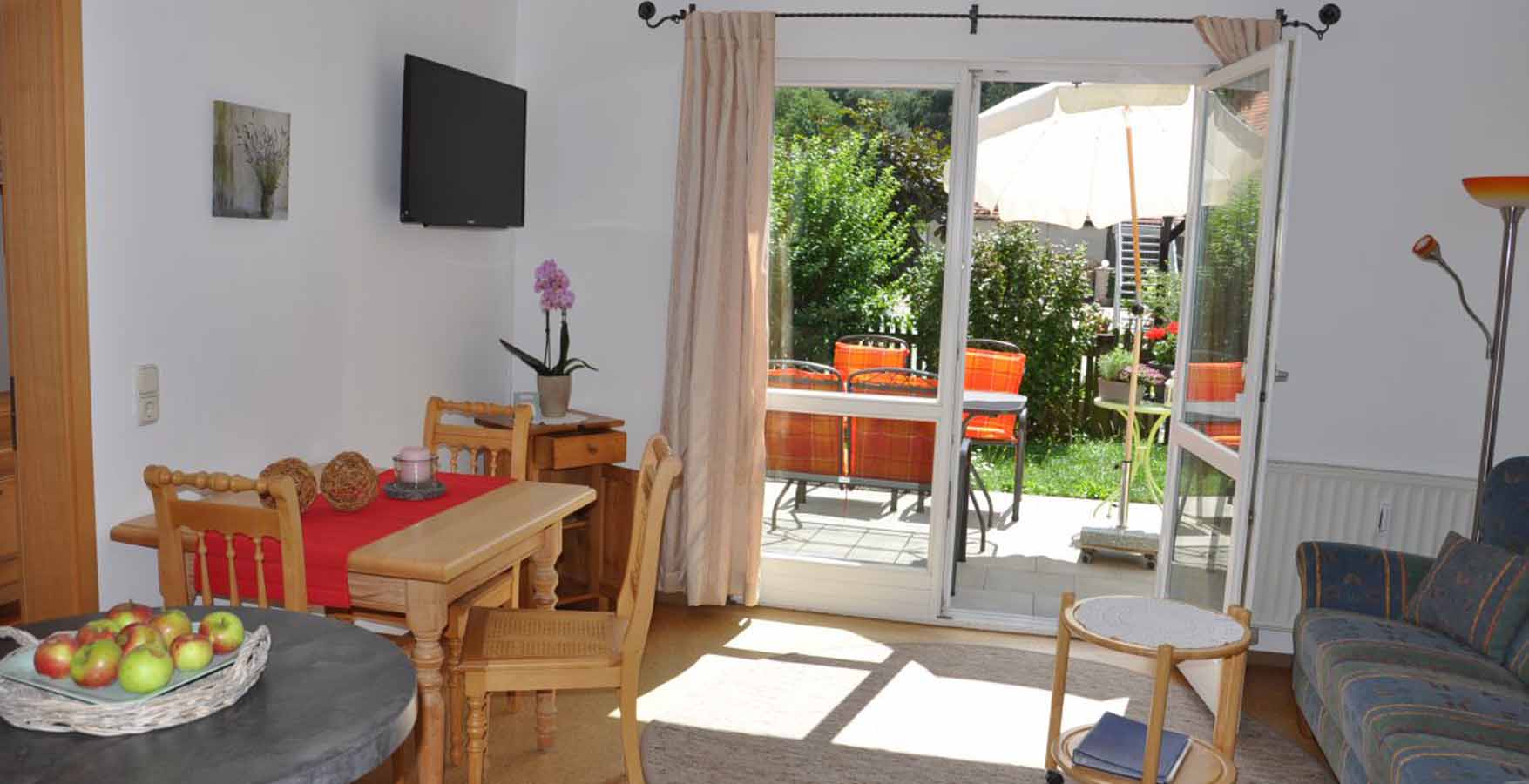 Vom gesunden Frühstück bis zum romantischen Abendessen mit einem Glas Wein lädt die südseitige Sonnenterrasse ein!