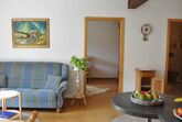 Zur Ausstattung im Wohnzimmer zählt ein 3er-Couch-Element, sowie Flachbild-TV mit Empfang über Sat-Anlage. Neu: kostenloses schnelles WLAN via Glasfaser.