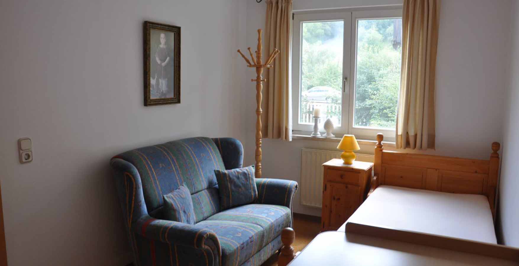 Die Schlafzimmer verfügen über erhöhte, handgeschreinerte Betten, sehr gut geeignet bei Rückenproblemen oder nach Operationen. Desweiteren hat der Schrank ein abschließbares Wandfach für Ihre Wertsachen. Das Bad verfügt über eine Dusche, WC und Waschbecken. Das bequeme, orthopädisch ausgelegte Sofa lädt zum Schmökern und Fernsehen ein.