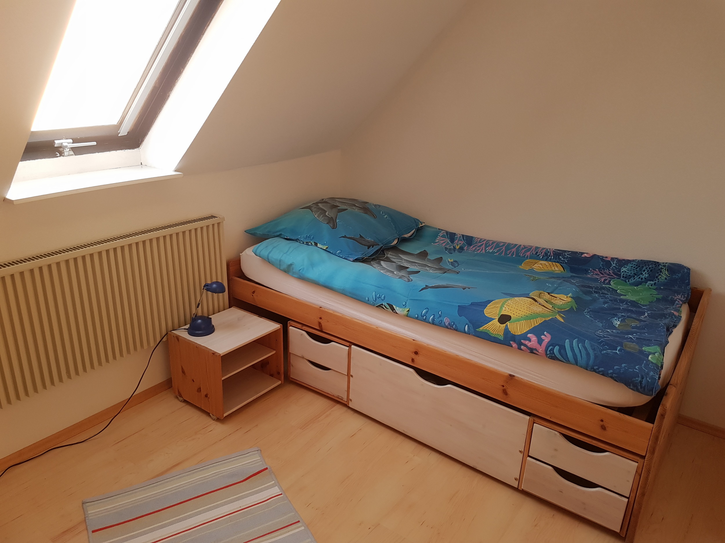Die abgeschlossene, großzügige, 90qm große Ferienwohnung befindet sich in befindet sich im ersten Stock eines Zweifamilienhauses und verfügt über 3 Schlafzimmer, Wohn-/Esszimmer, Bad, Küche und überdachten Süd-Balkon. Das Haus liegt in einer Nebenstraße/Sackgasse ohne Durchgangsverkehr.