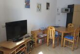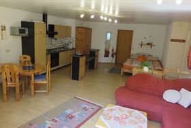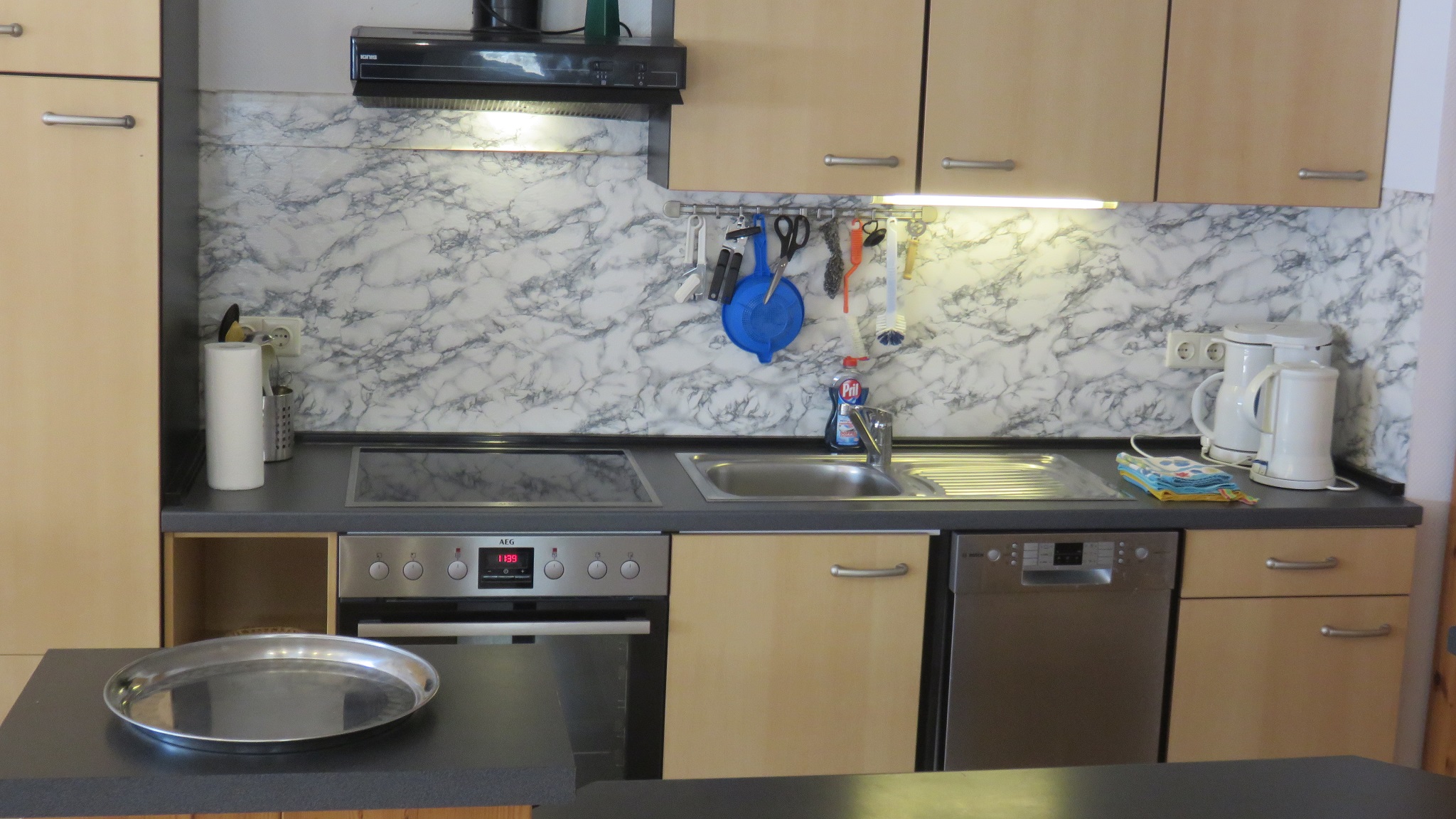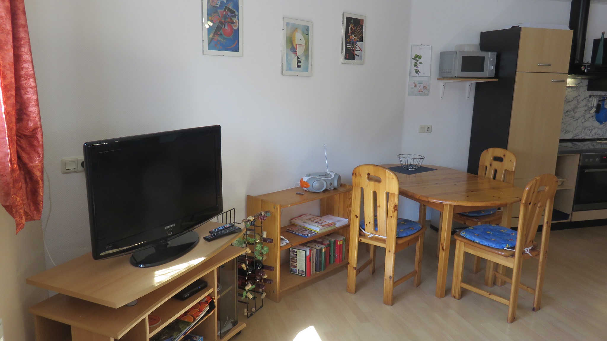 Auf dem sonnigen Freisitz befinden sich komfortable Gartenmöbel. Die Souterrainwohnung verfügt über einen kombinierten Wohn- und Schlafbereich mit Doppelbett und Schlafsofa für die dritte Person. Der Wohnbereich verfügt zudem über einen SAT-TV und Radio. Die Küche ist komplett ausgestattet (Herd, Backofen, Geschirrspüler, Geschirr, Besteck, Wasserkocher, Toaster, Kaffeemaschine, Küchenwäsche und viele weitere Küchenutensilien). Das Badezimmer ist mit Haartrockner, Dusche und WC ausgestattet.