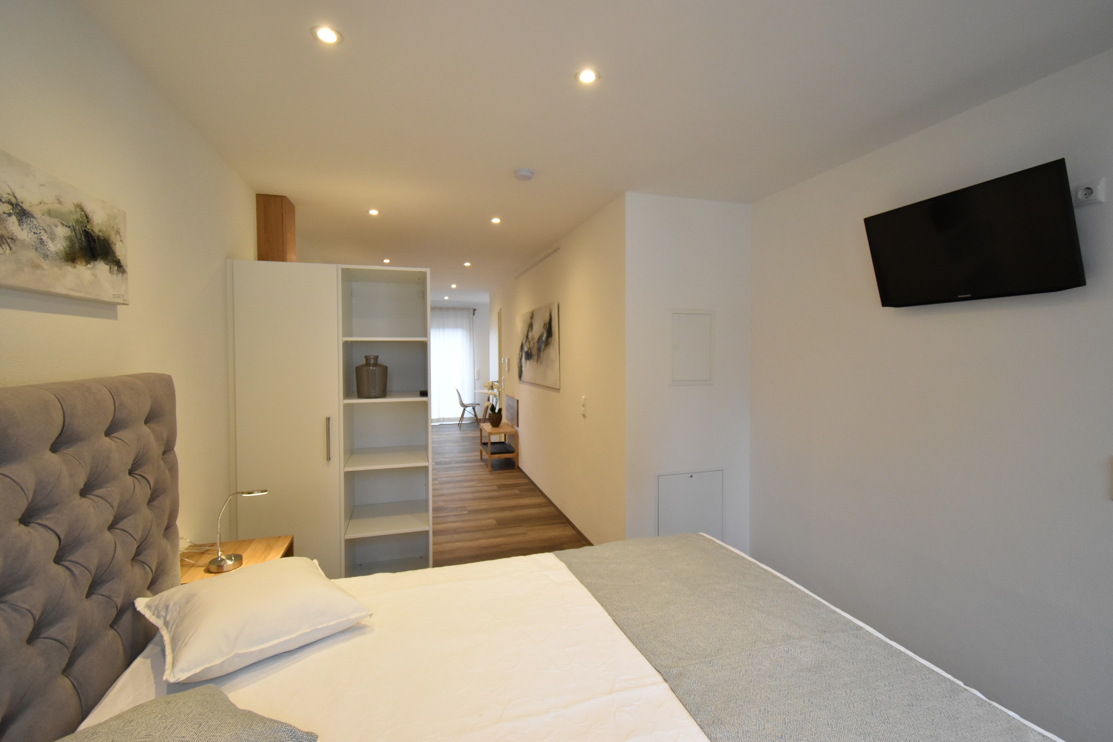 Das Appartment mit einer Größe von 52 qm verfügt über ein Wohn-/Schlafzimmer mit Küchenzeile sowie einer separaten Sitzgelegenheit und SAT-TV. Im gemütlichen Boxspring-Doppelbett können Sie sich von Ausflügen in die Altstadt und Umgebung erholen. Die liebevoll ausgestattete Küchenzeile mit Kaffeemaschine, Kühlschrank, Mikrowelle sowie Kochfeld bietet Ihnen die Möglichkeit, sich während Ihres Aufenthaltes selbst zu versorgen. Natürlich finden Sie in direkter Nachbarschaft aber auch zahlreiche Cafés und Restaurants für einen genussvollen Aufenthalt.