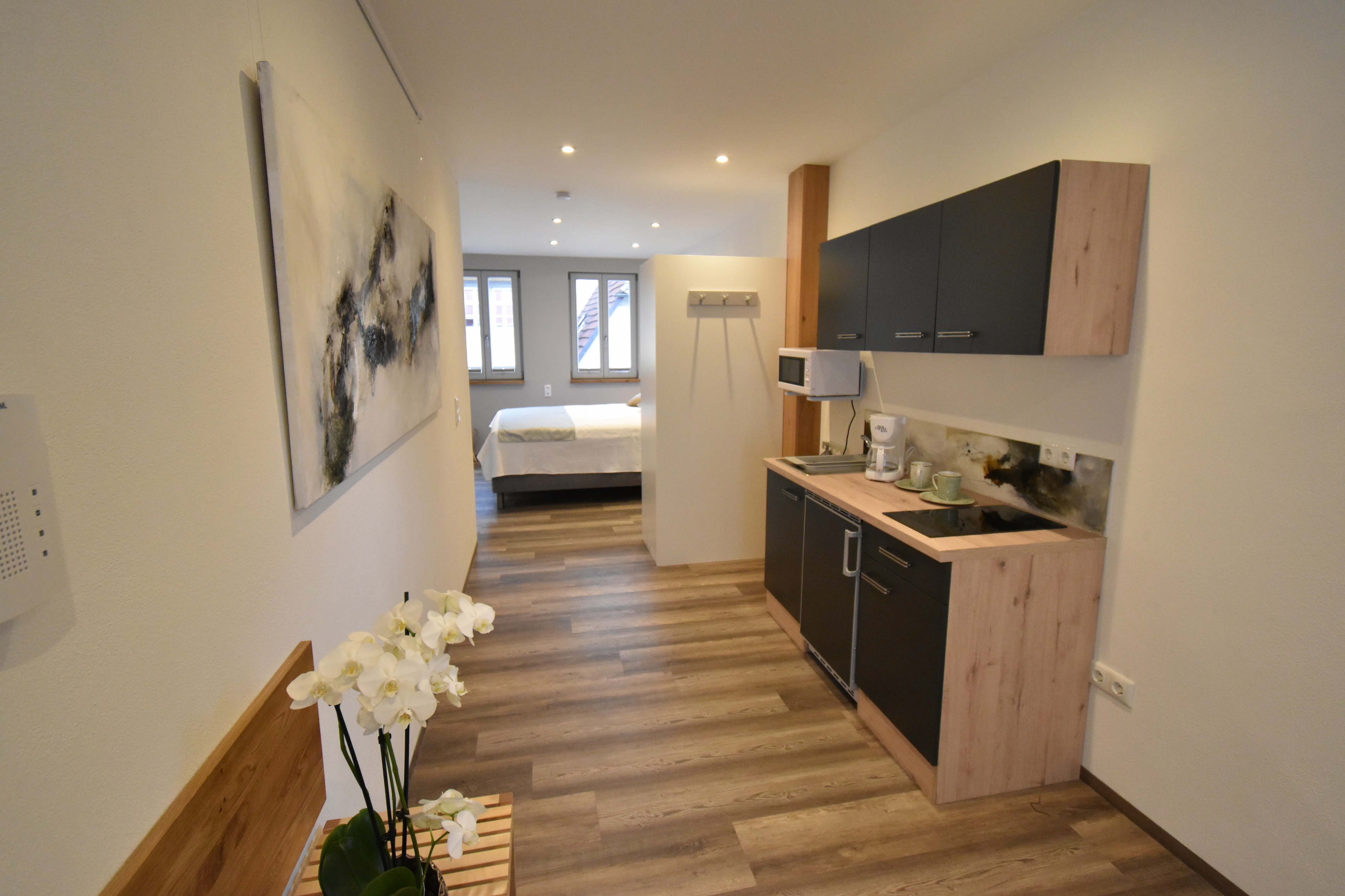 Jedes Apartment ist individuell und liebevoll eingerichtet mit Küchenzeile.
