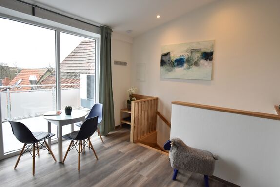 Das Apartment „Mare“ verfügt über einen Balkon mit Sitzmöglichkeit.