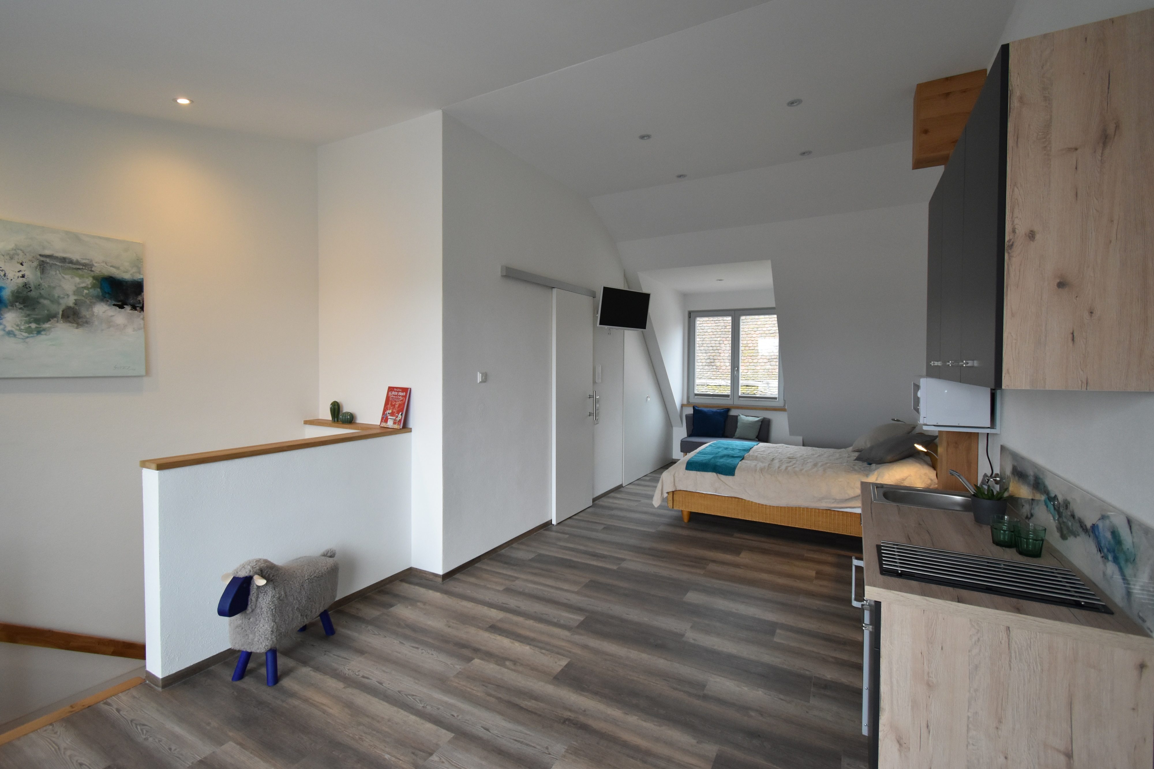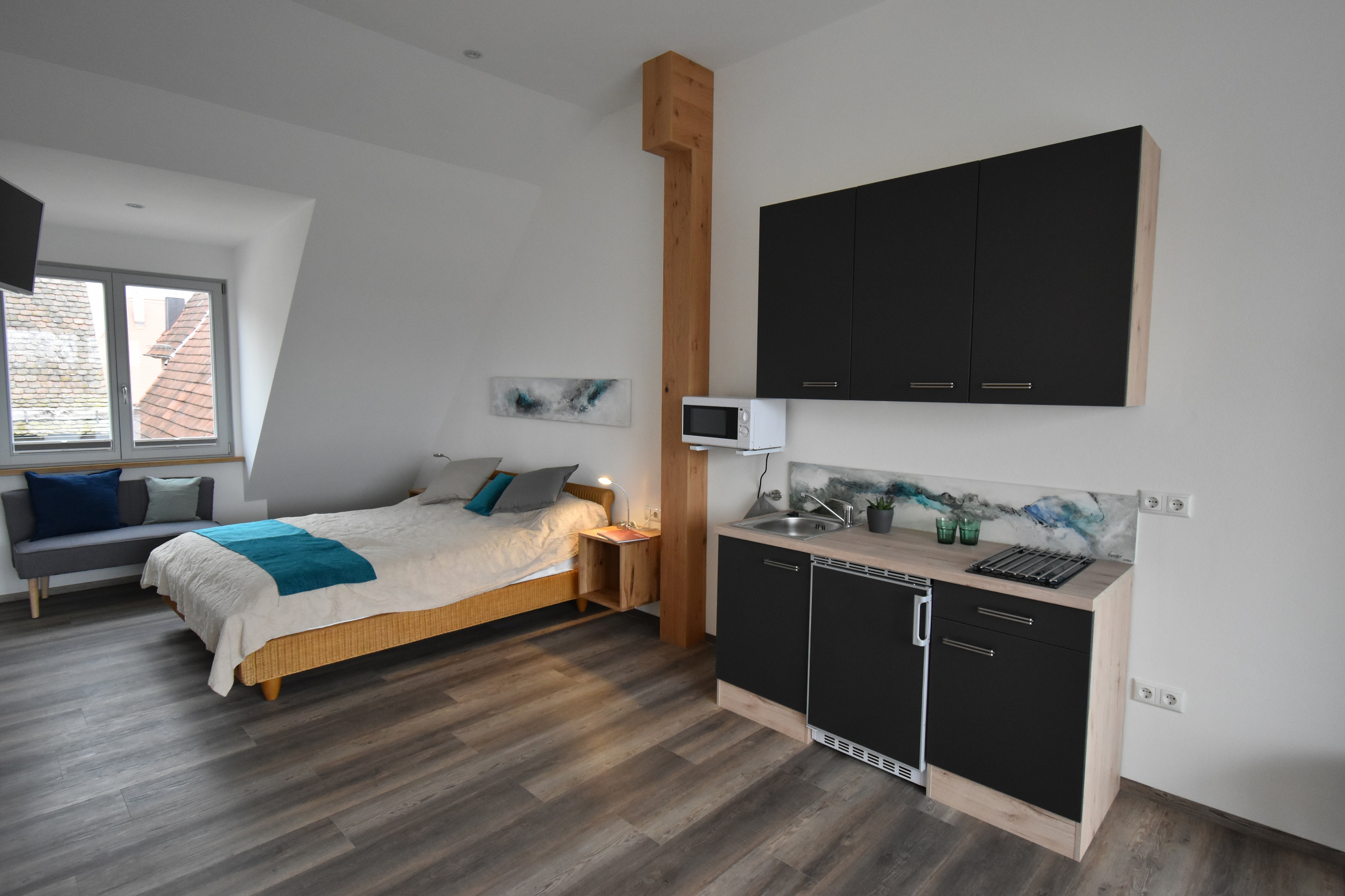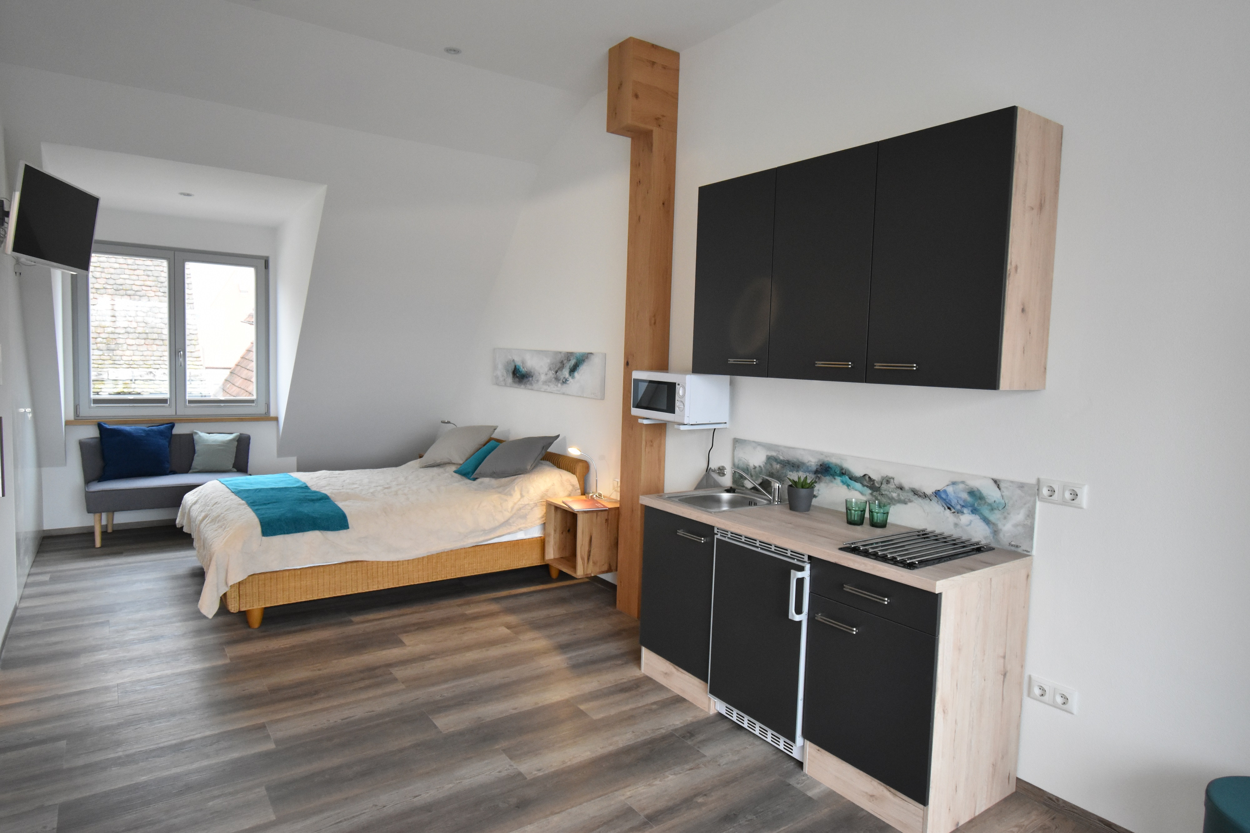 Das Designer Appartement Mare erwartet Sie mit stilvoller Einrichtung mitten in der Altstadt Volkachs.