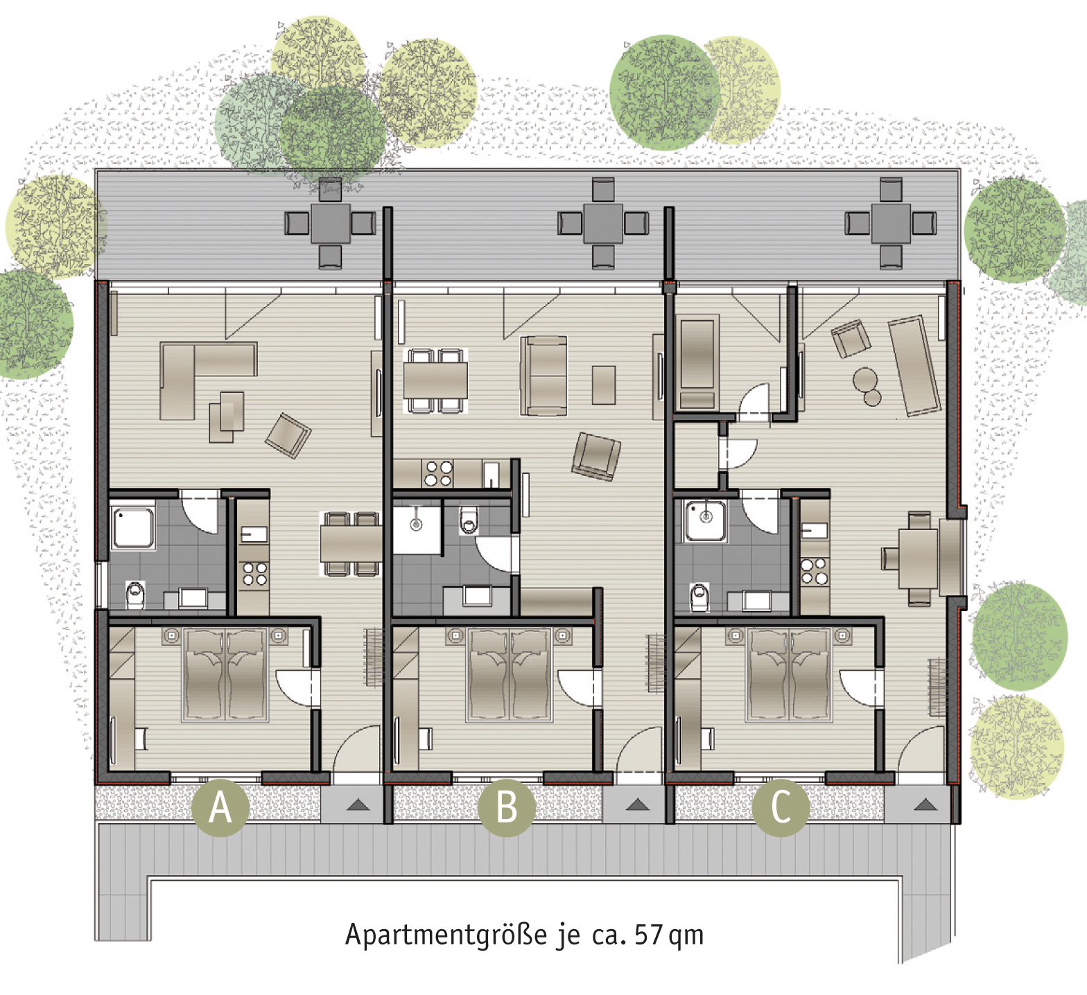 Das im April 2020 fertiggestellte Apartmenhaus verfügt über 3 moderne Ferienwohnungen. Die stilvoll eingereichteten Wohnungen haben eine Größe von ca. 57 qm mit separatem Eingang und Balkon in Südlage.