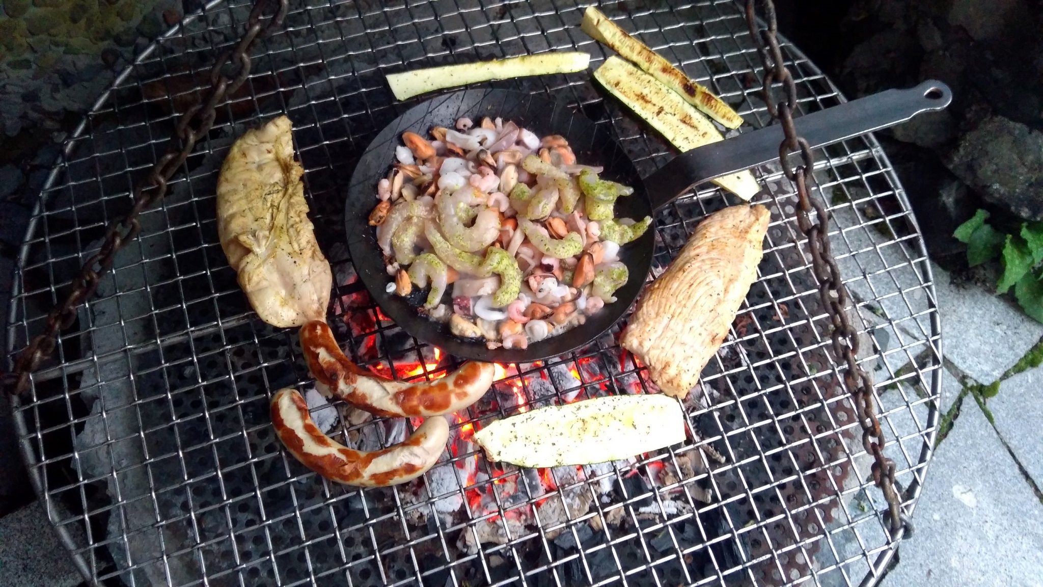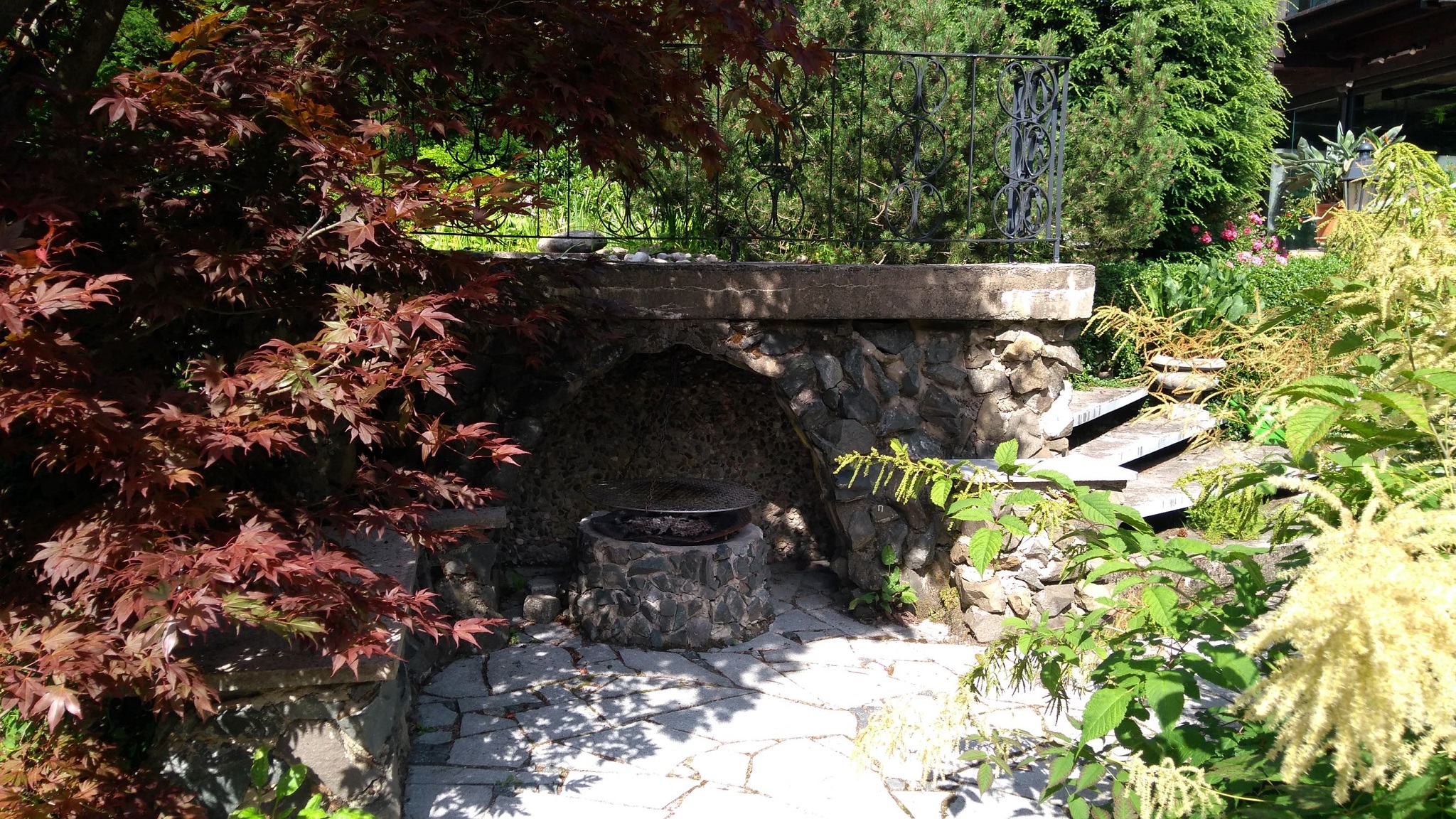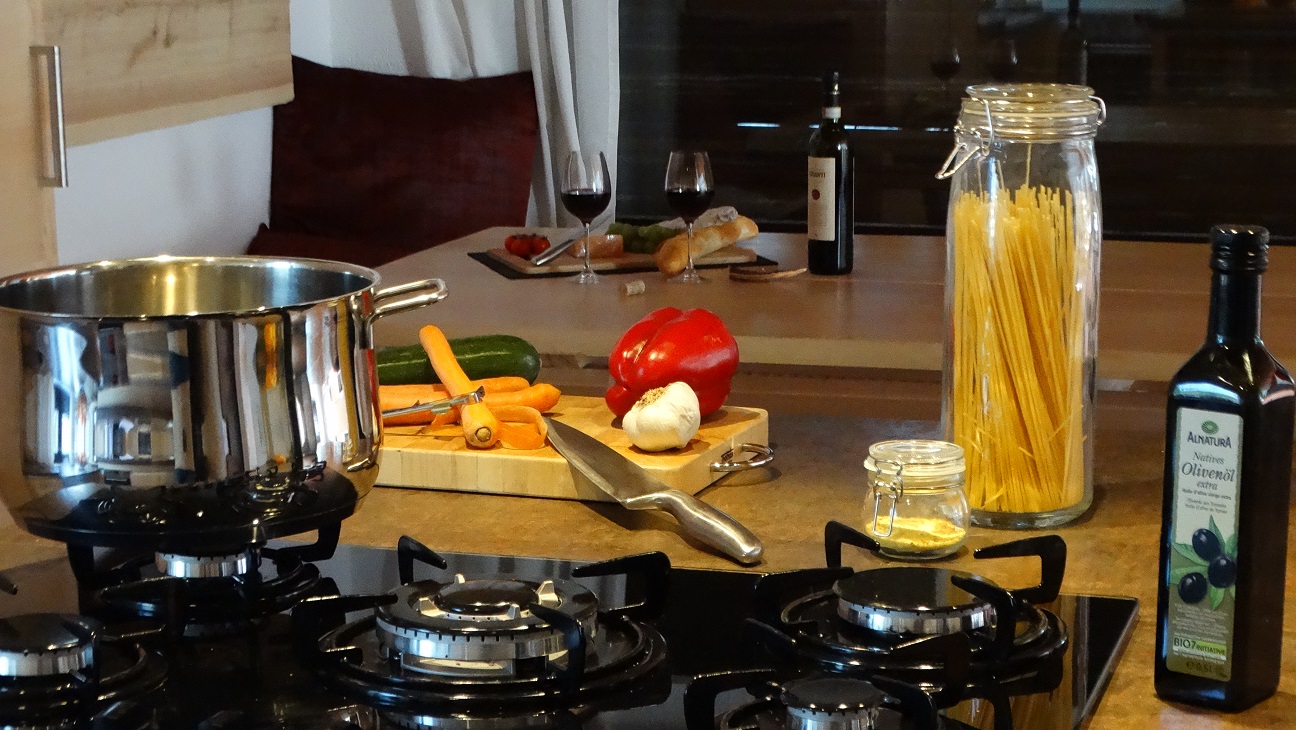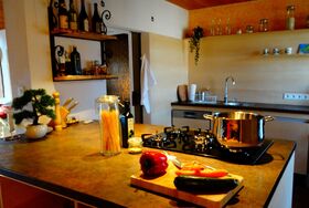 Zum Genießen steht Ihnen ein Küchenblock mit Gaskochfeld, ein Grillplatz sowie frische Kräuter und Beeren aus dem Garten zur Verfügung.