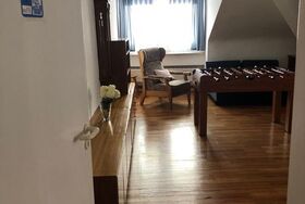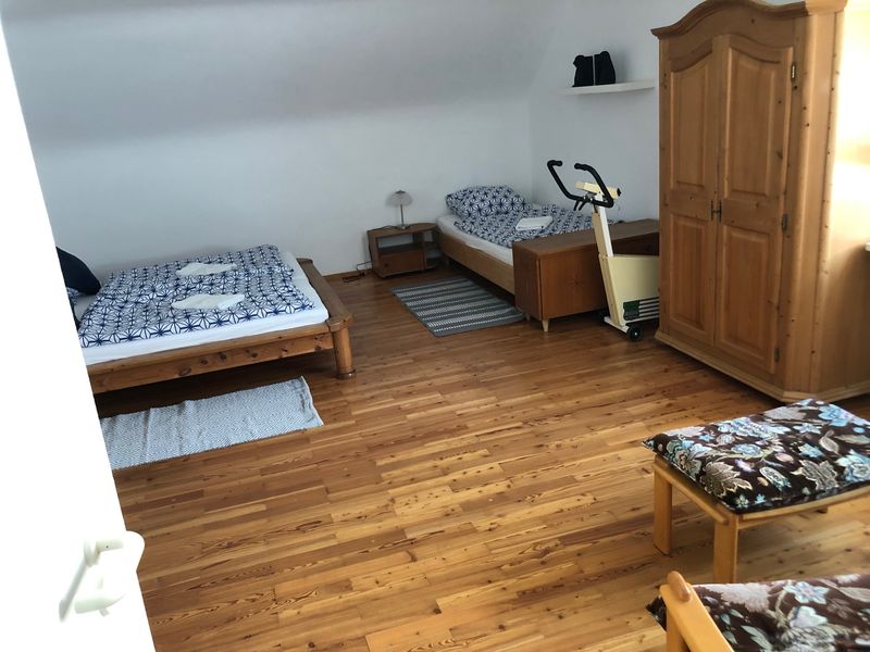Im 2. OG befindet sich die größte Ferienwohnung mit 112 qm, die wir nach einigen Renovierungsarbeiten seit Sommer 2020 anbieten können. Sie hat 4 Schlafzimmer und einen großen Küchen- und Essbereich, separates WC und Bad mit 2 Waschbecken, Dusche und Badewanne + eigene Dachterrasse mit Grillmöglichkeit.