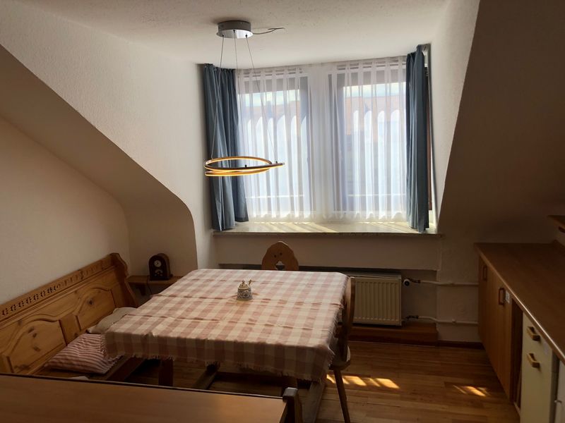 Seit Mai 2020 können wir Ihnen in dem Traditionshaus „HEINTZ“ (seit 1884), mitten am Marktplatz, diese große (112 qm) Ferienwohnung anbieten. Sie erstrahlt nach einigen Renovierungs- und Modernisierungsmaßnahmen in neuem Glanz. Auf Bad Königshofens Sonnenseite erwarten Sie eine großzügige, rustikale und moderne Zimmer für bis zu 11 Personen. Diese ist ausgestattet mit einer gemütlichen Küche mit Essbereich und Rathausblick (Glockenspiel) sowie einer riesigen Dachterrasse (30 m²) zum Entspannen und Träumen. Das Bad ist mit Fliesenboden, die restliche FeWo mit Holzdielenboden ausgestattet. Haustiere und Rauchen sind nicht gestattet. Besonders gemütlich wirkt die Ferienwohnung durch den Einsatz modernster Beleuchtungstechnik (LED). Die Gäste profitieren vom Charme einer Kleinstadt, aber nächtliche Ruhe wie auf dem Land sowie unserer Kinder-, Wander- und Radfahrer-Freundlichkeit. Seit 2021 führen wir selbst das Café Heintz, das sich im Erdgeschoss befindet. Nach aufwendiger Renovierung finden Sie hier ein modernes Traditions-Café vor.