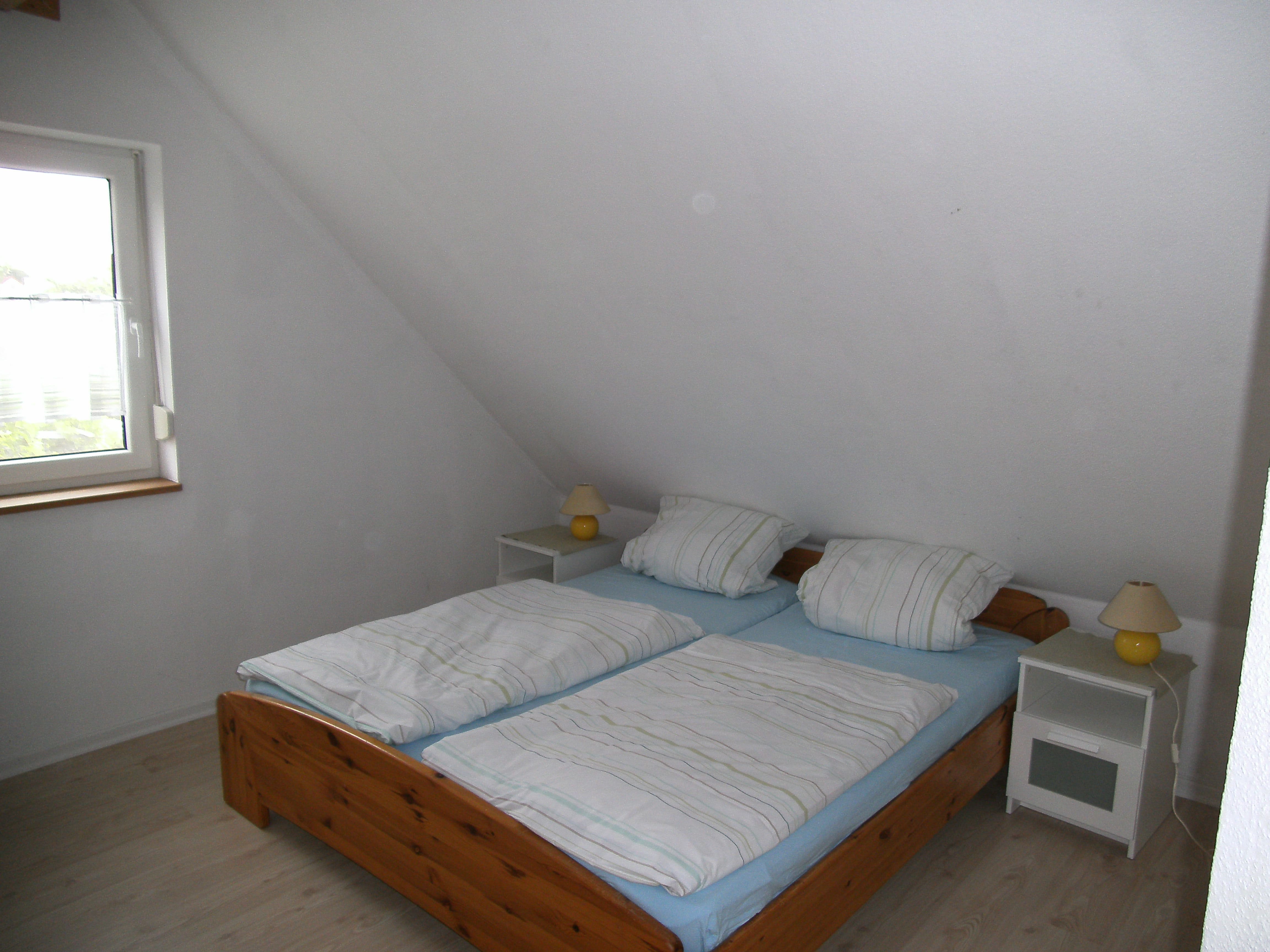 Das gemütliche Ferienhaus (Holzhaus , Bj. 2007) bietet auf 85qm Platz für bis zu 5 Personen. Gleich am Haus ist ein großer Garten mit ca. 400 qm, dieser wird von den Gästen alleine belegt. Das Haus befindet sich in einer ruhigen Seitenstraße in 800m Entfernung zum See / Vogelinsel. Im Erdgeschoss gibt es ein Wohnzimmmer mit gemütlicher Couchecke und Sat-TV. Ein Kaminofen sorgt für eine gemütliche Atmosphäre. Des weiteren gibt es eine gemütliche Essecke sowie eine gut ausgestattete Küche. In der Küche ist ein Kühlschrank mit Gefrierfach, eine Mikrowelle, ein Backofen mit Ceranfeld und eine Spülmaschine. Ausßerdem gibt es einen Wasserkocher und eine Kaffeemaschine, Geschirr ist vorhande. Das Erdgeschoss verfügt zudem über ein Bad mit Dusche, WC und Badewanne. Auch ein Hauswirtschaftsraum ist vorhanen, hier steht Ihnen eine Waschmaschine kostenfrei zur Verfügung. Im Obergeschoss des Hauses gibt es 3 Schlafzimmer. Das eine Schlafzimmer verfügt über ein Doppelbett, das zweite über zwei Einzelbetten, im dritten Schlafzimmer gibt es ein Einzelbett sowie ein Kinder-Gitterbett (für Kinder bis 3 Jahren).