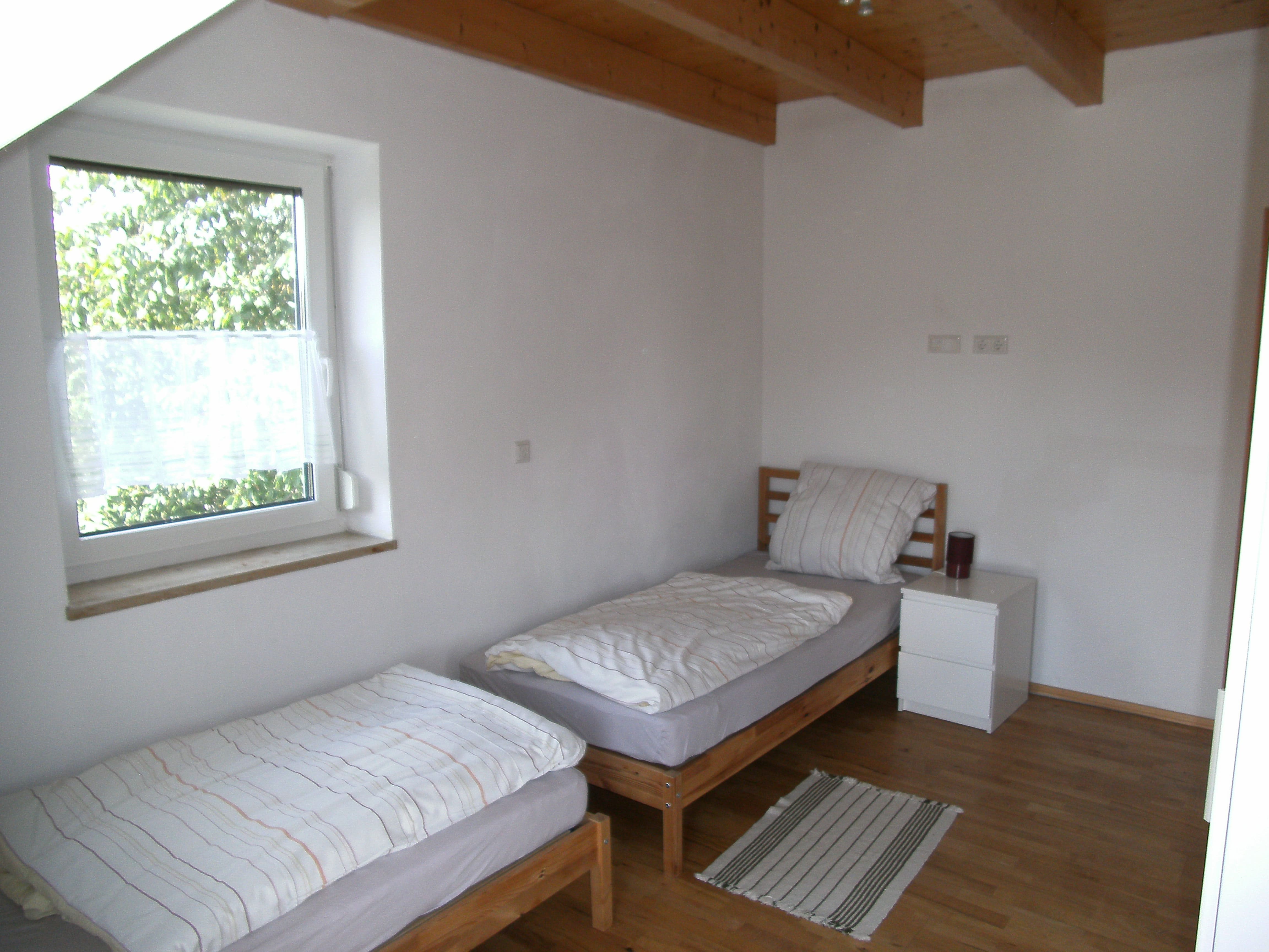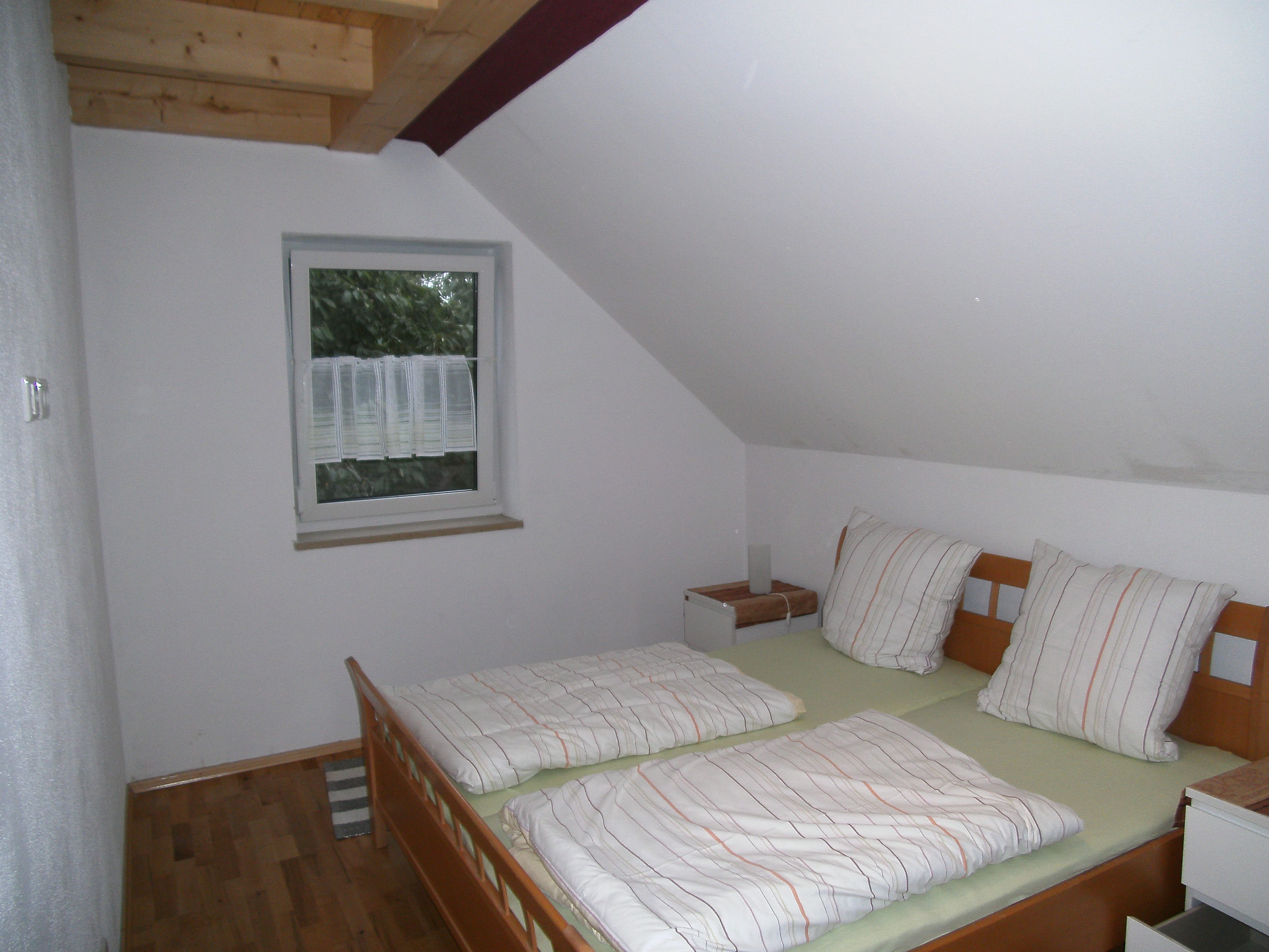 Im Obergeschoss sind drei Schlafzimmer mit 1 Doppelbett und drei Einbettzimmer. Alle Fenster sind mit Insektenschutz ausgestattet. Im Bad gibt es ein Waschbecken, Dusche und WC. Ein Kleinkindgerechtes Bett befindet sich im Hauptschlafraum. Ein abschließbarer Fahrradabstellraum mit Stromversorgung steht zur Verfügung.