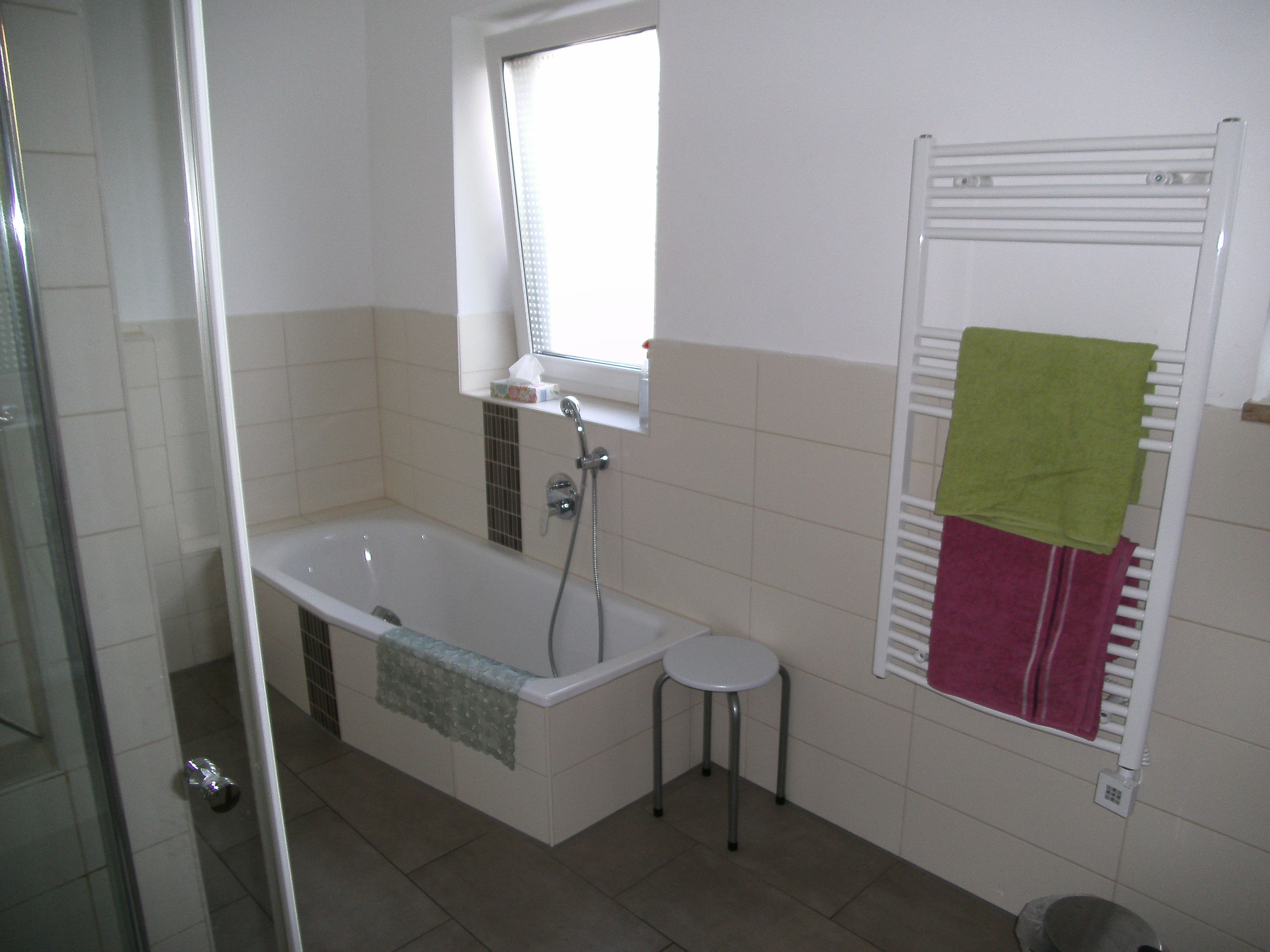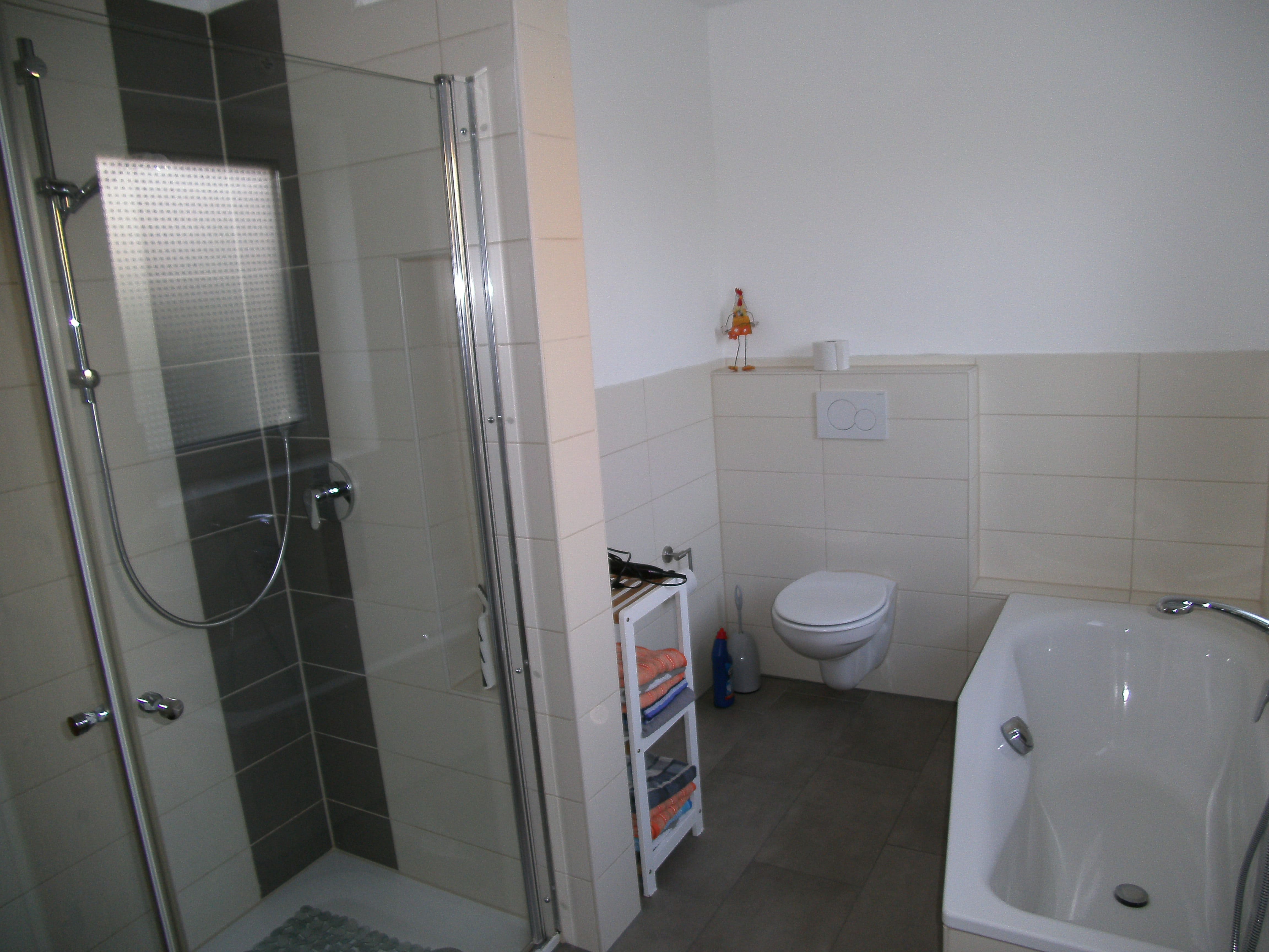 Im EG befinden sich ein Wohn Essbereich , eine gut ausgestattete Küche mit Backofen, Geschirrspüler, ein Bad mit Dusche WC und Wanne.