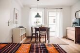 Die helle Ferienwohnung Cara hat eine Größe von ca. 50 m² und befindet sich im Erdgeschoss. Sie bietet Platz für einen Erwachsenen mit 2 Kindern.