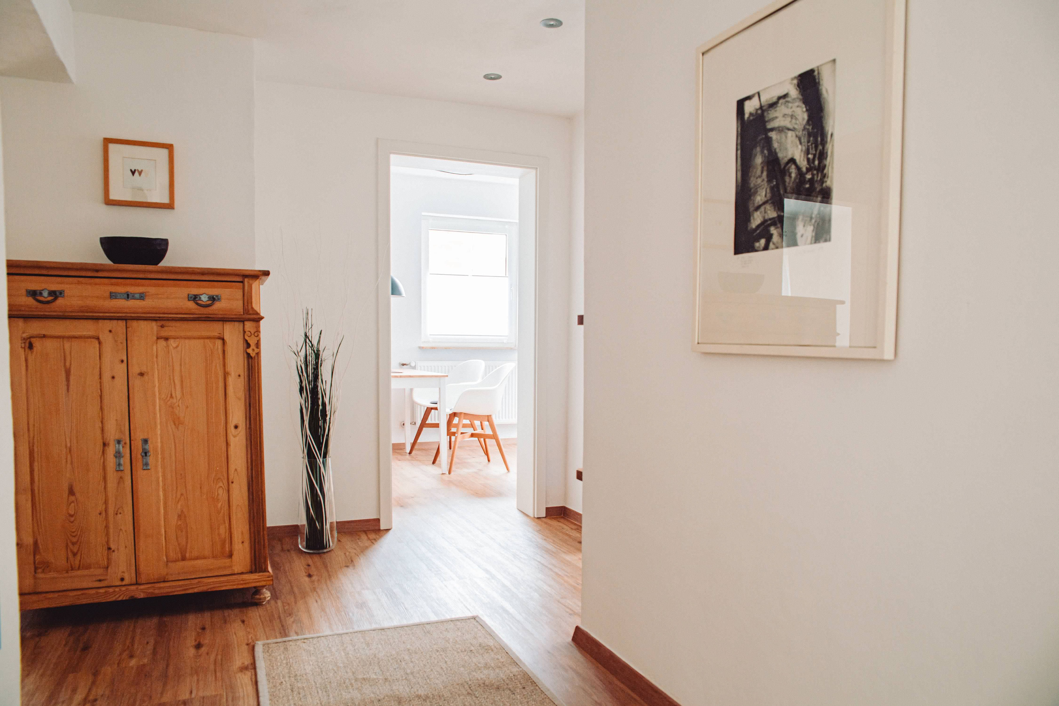 Die Ferienwohnung Eyka befindet sich mit ca. 65 m² im Erdgeschoss und besteht aus einer hellen Wohnküche, einem großzügigem Flur, einem Schlafzimmer und einem Bad. Sie bietet Platz für 4 Personen.