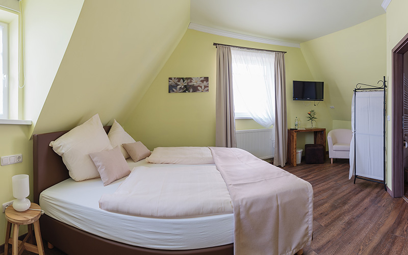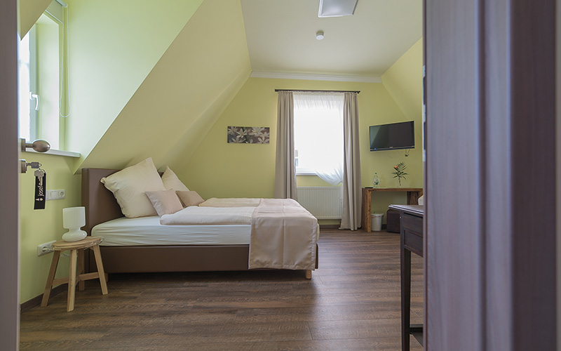 Unsere allergikergeeigneten Nichtraucher- Doppelzimmer verfügen über eine geschmackvolle Einrichtung. Sie bestehen aus einem freundlichen Schlafraum und einem modern eingerichteten Badezimmer. Egal ob Sie also als Paar, Freunde oder allein verreisen, hier kommt jeder auf seine Kosten. Denn wir bieten Hotelbetten mit orthopädischen Qualitätsmatratzen, Allergikerbettwäsche, kostenfreies WLAN, einen kostenlosen Prakplatz und vieles mehr.