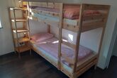 Zwei Schlafzimmer mit einem Doppelbett und zwei Etagenbetten. Optional ein Kinderreise-Bett. Im Wohn-Essbereich befindet sich zusätzlich eine Couch mit Schlaffunktion.