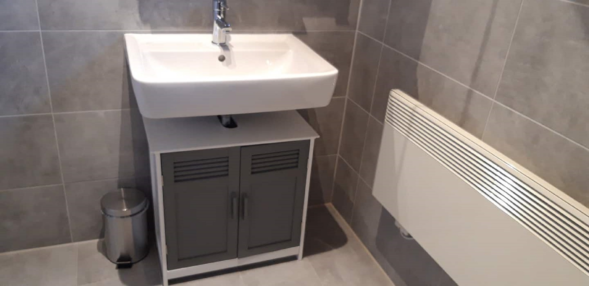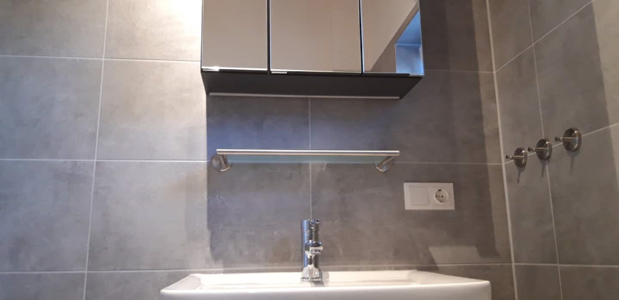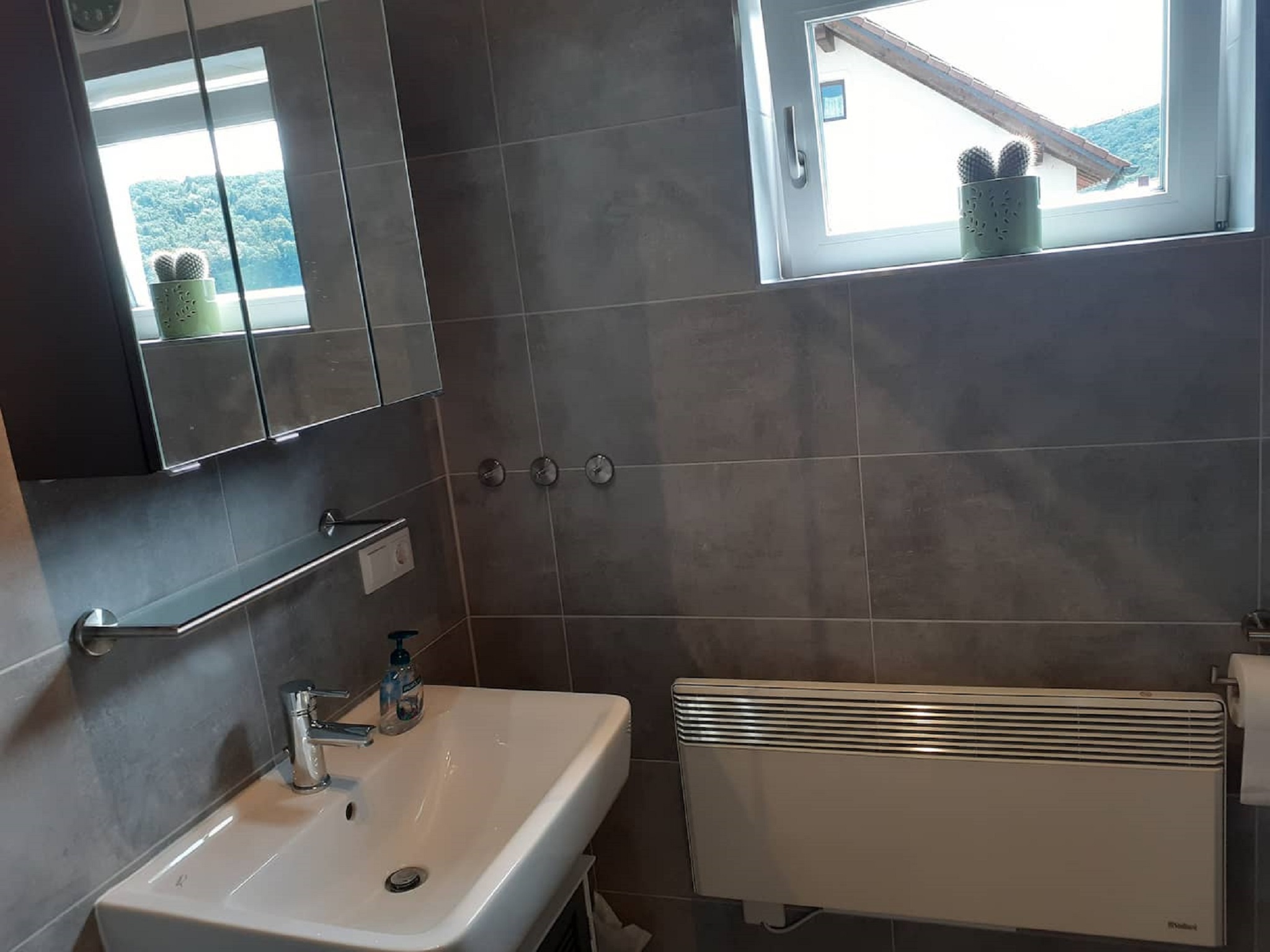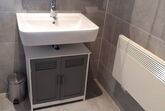 Für die Körperpflege finden Sie in der oberen Etage ein Bad mit WC, Waschbecken ... und einer bodenebenen Dusche.
