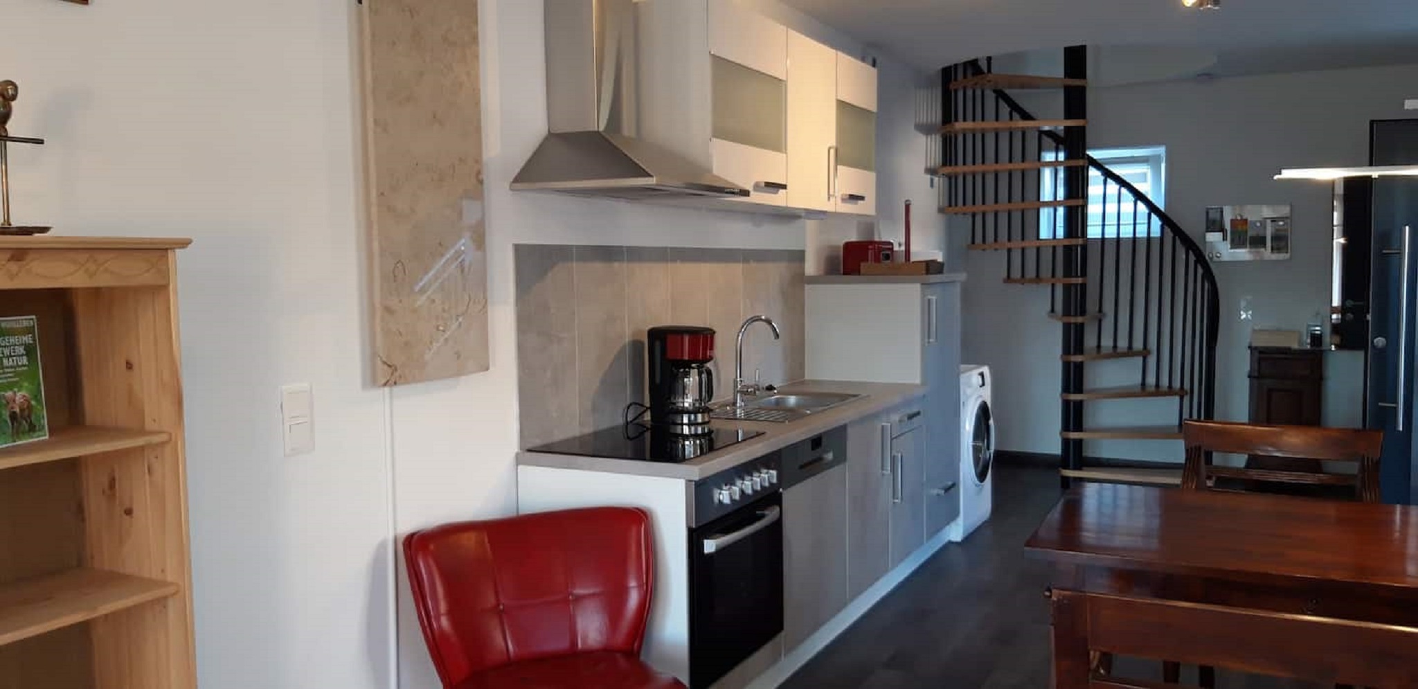 Die Küche ist ausgestattet, mit allem Zubehör, was zum Kochen benötigt wird inkl. Herd und Backofen, einem Kühlschrank mit Gefrierfach, Kaffeemaschine und einem Eierkocher. Wenn du Grillen möchtest, steht dir im Garten ein Grill zur Verfügung inkl. Grillkohle und Anzünder.