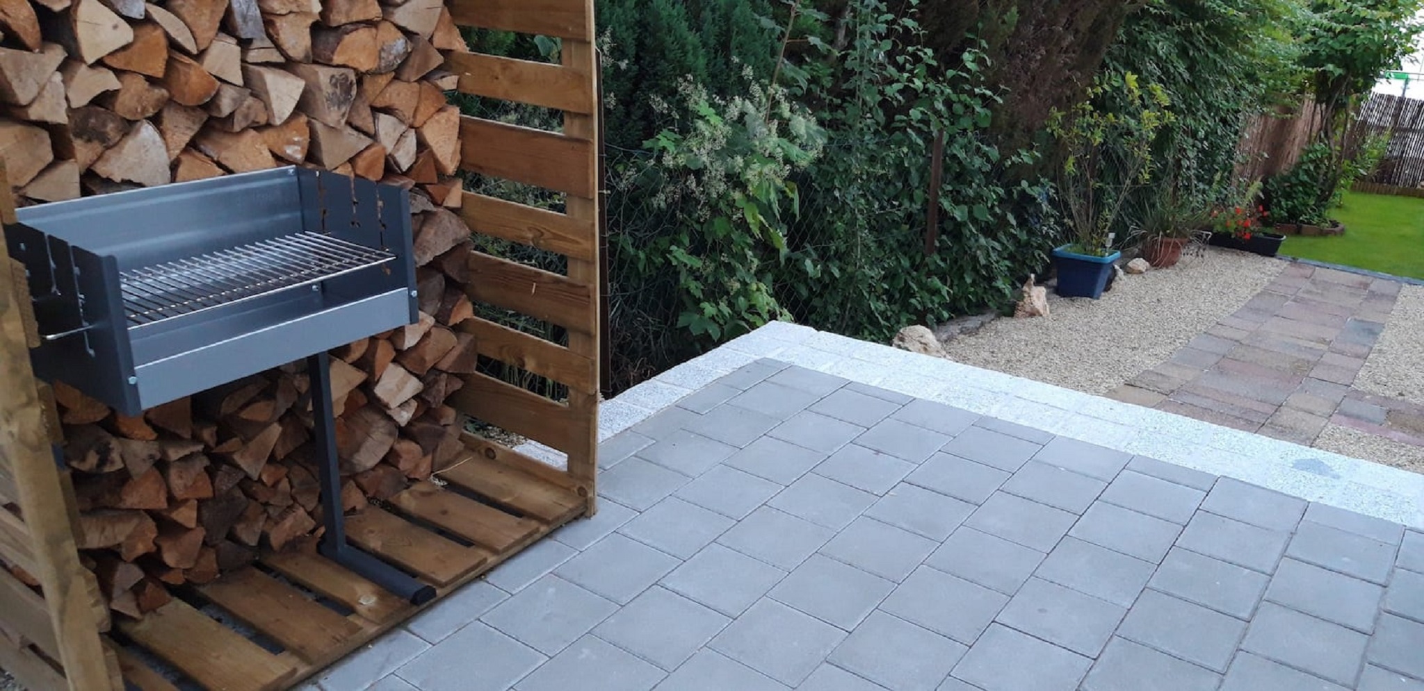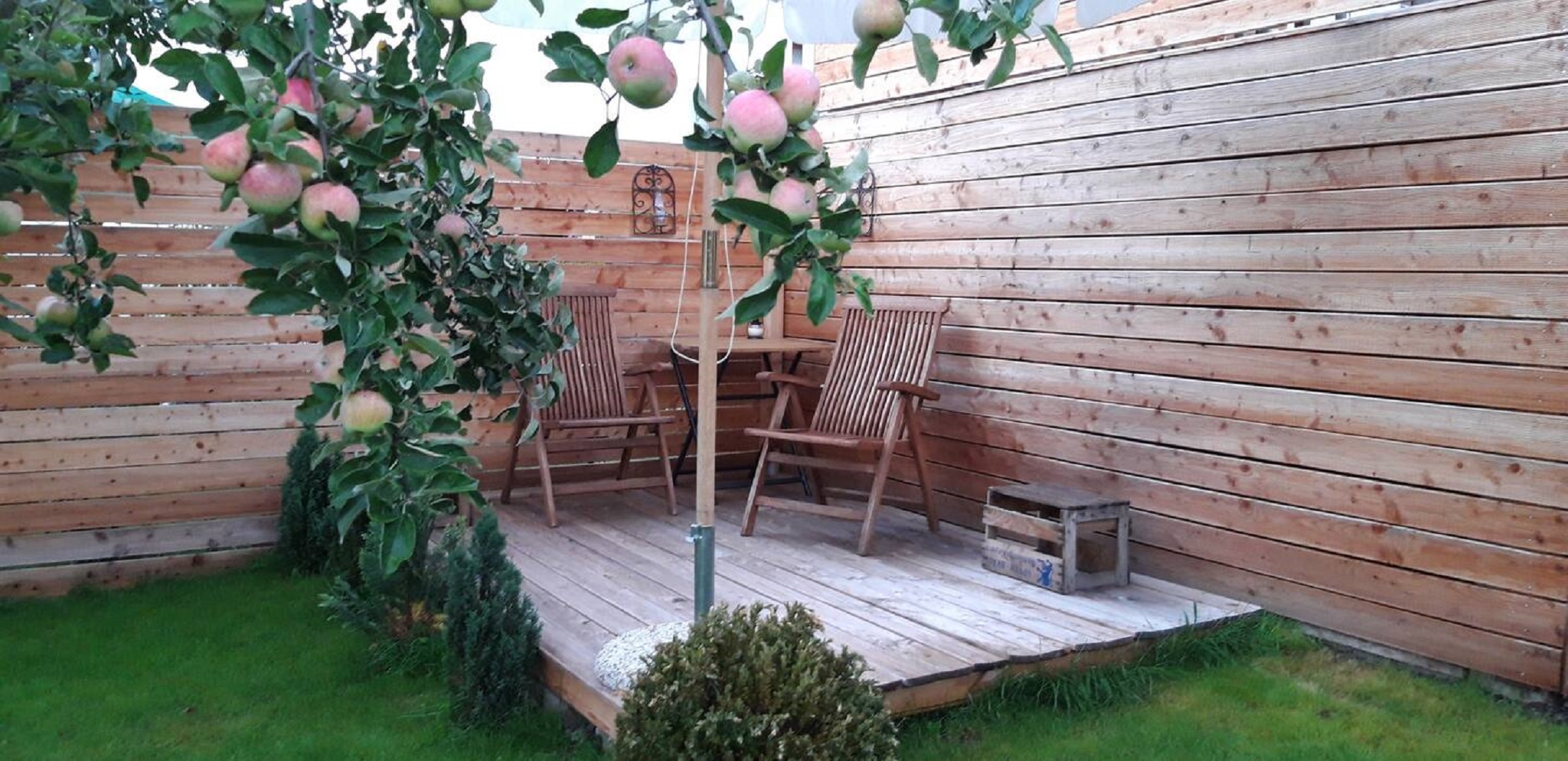 Das Essen kann man, entweder im Haus (Essbereich), auf der bestuhlten Terrasse mit Blick auf die Rosenburg oder im Garten.