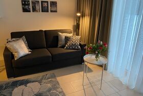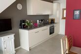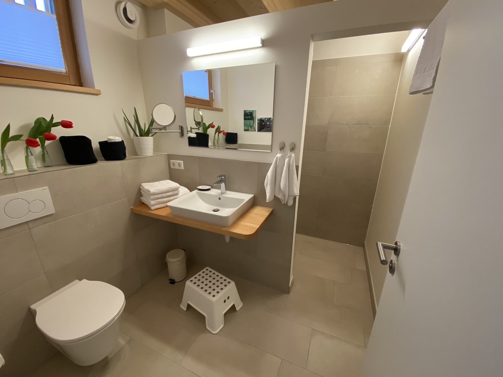 Die Ferienwohnung befindet sich in einem Holzneubau. Im Erdgeschoss befinden sich eine offene Küche, ein Esstisch mit 4 Stühlen, Sofa mit Schlaffunktion, Smart-TV und das Badezimmer mit WC und ebenerdiger Dusche.